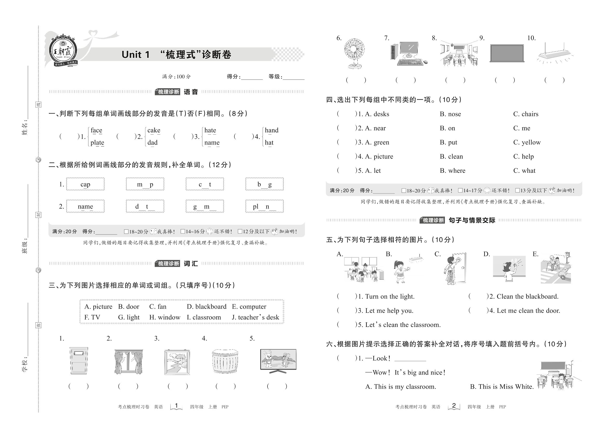 2022上册四年级英语人教PEP版 Unit 1 “梳理式”诊断卷