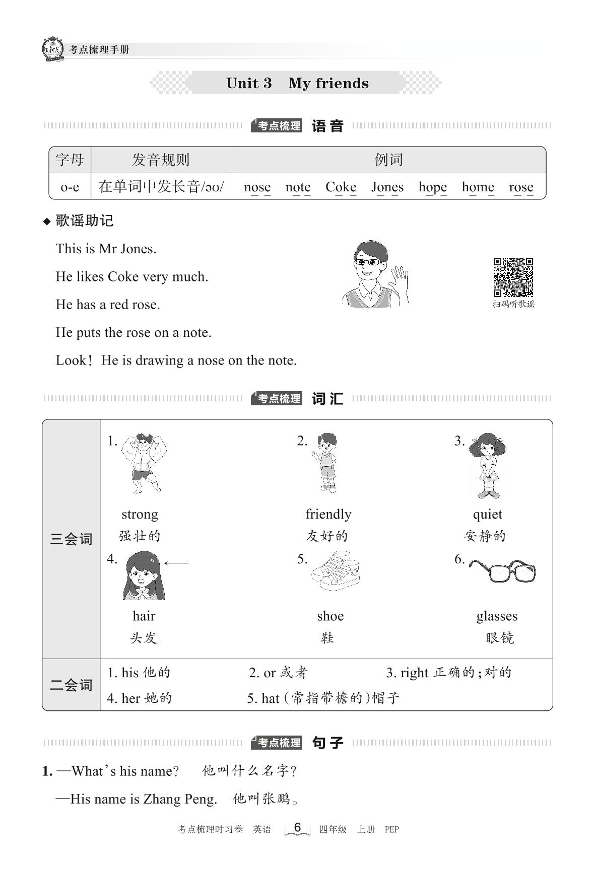 2022上册四年级英语人教PEP版 考点梳理手册——Unit 3 My friends