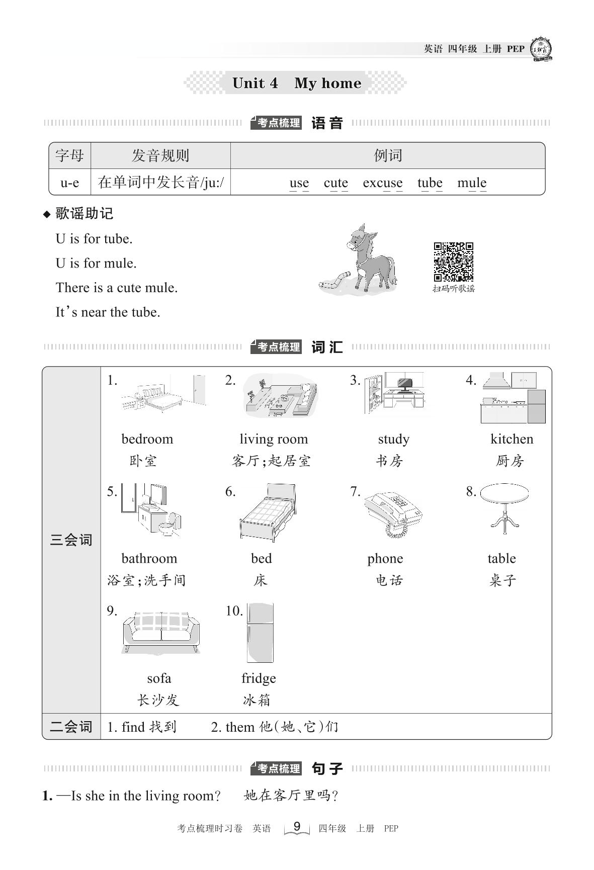 2022上册四年级英语人教PEP版 考点梳理手册——Unit 4 My home