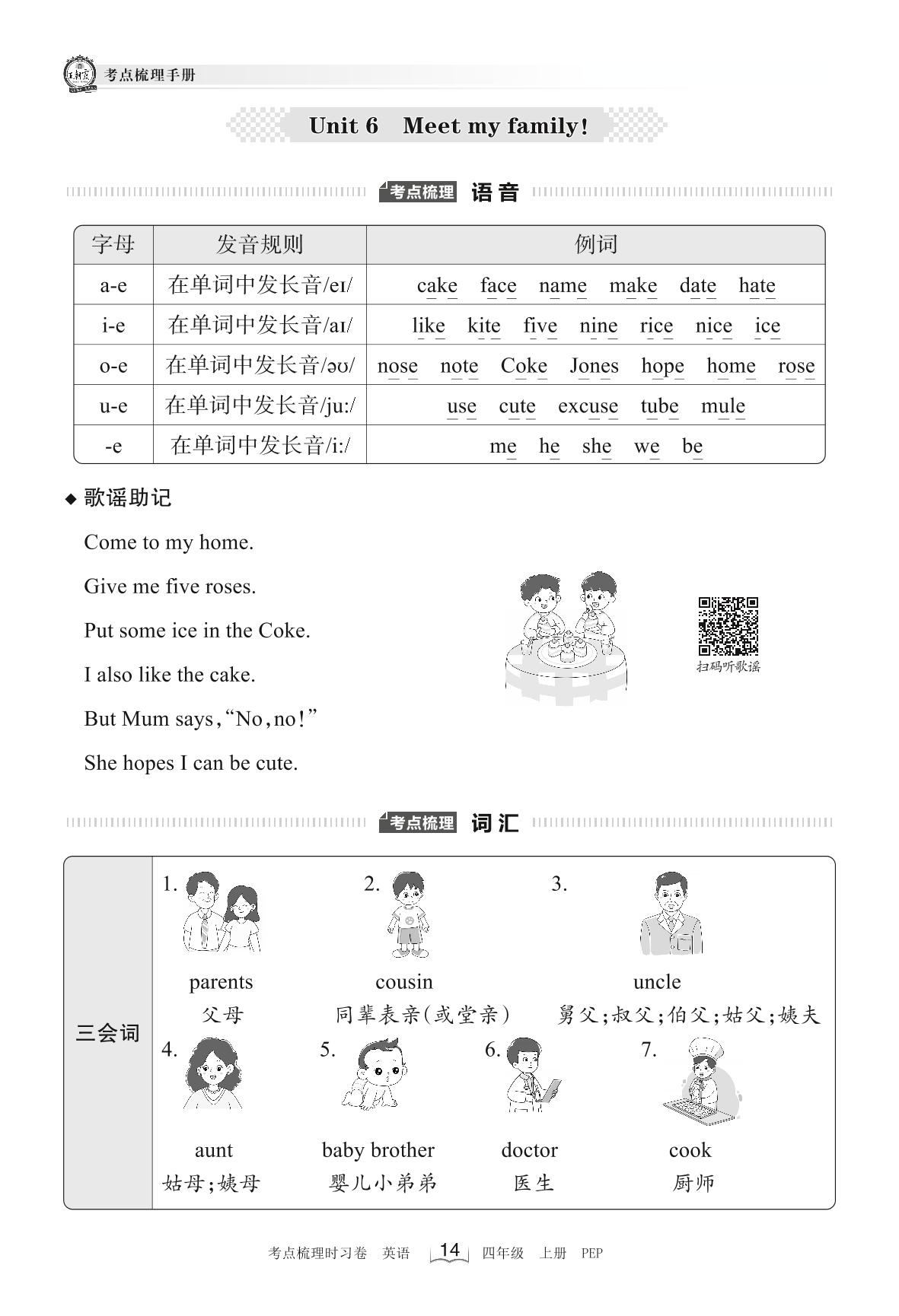 2022上册四年级英语人教PEP版 考点梳理手册——Unit 6 Meet my family!