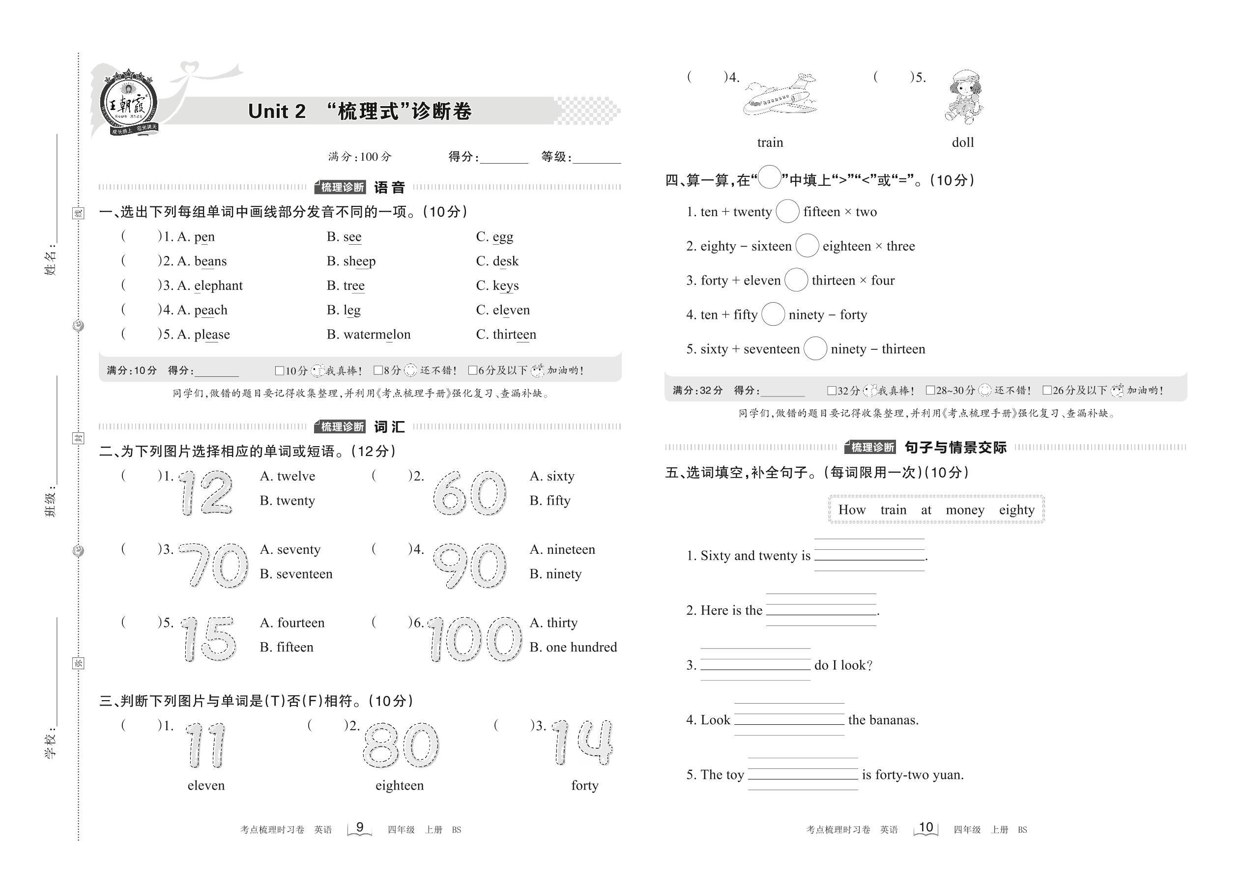 2022上册四年级英语北师版 Unit 2 “梳理式”诊断卷