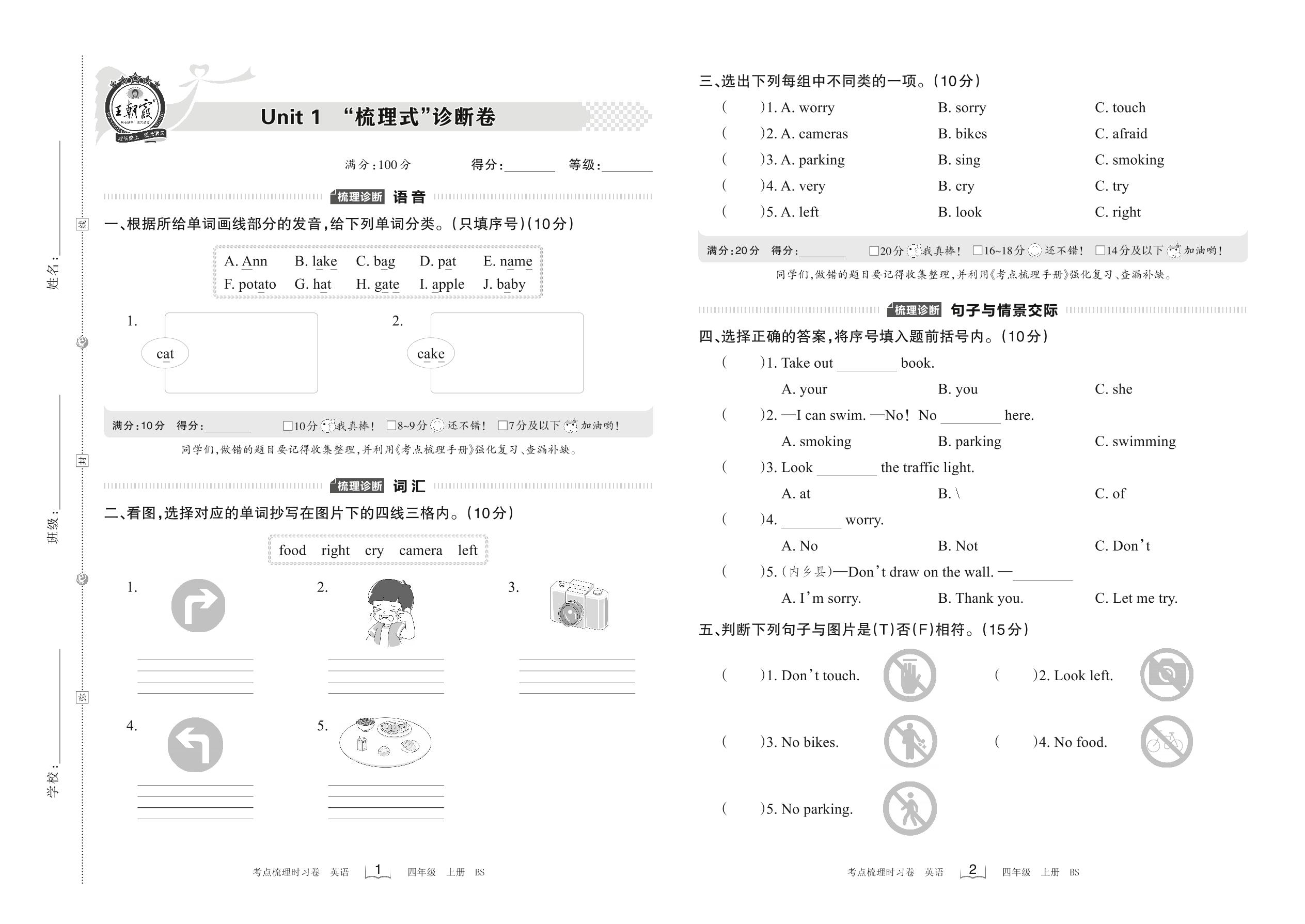 2022上册四年级英语北师版 Unit 1 “梳理式”诊断卷