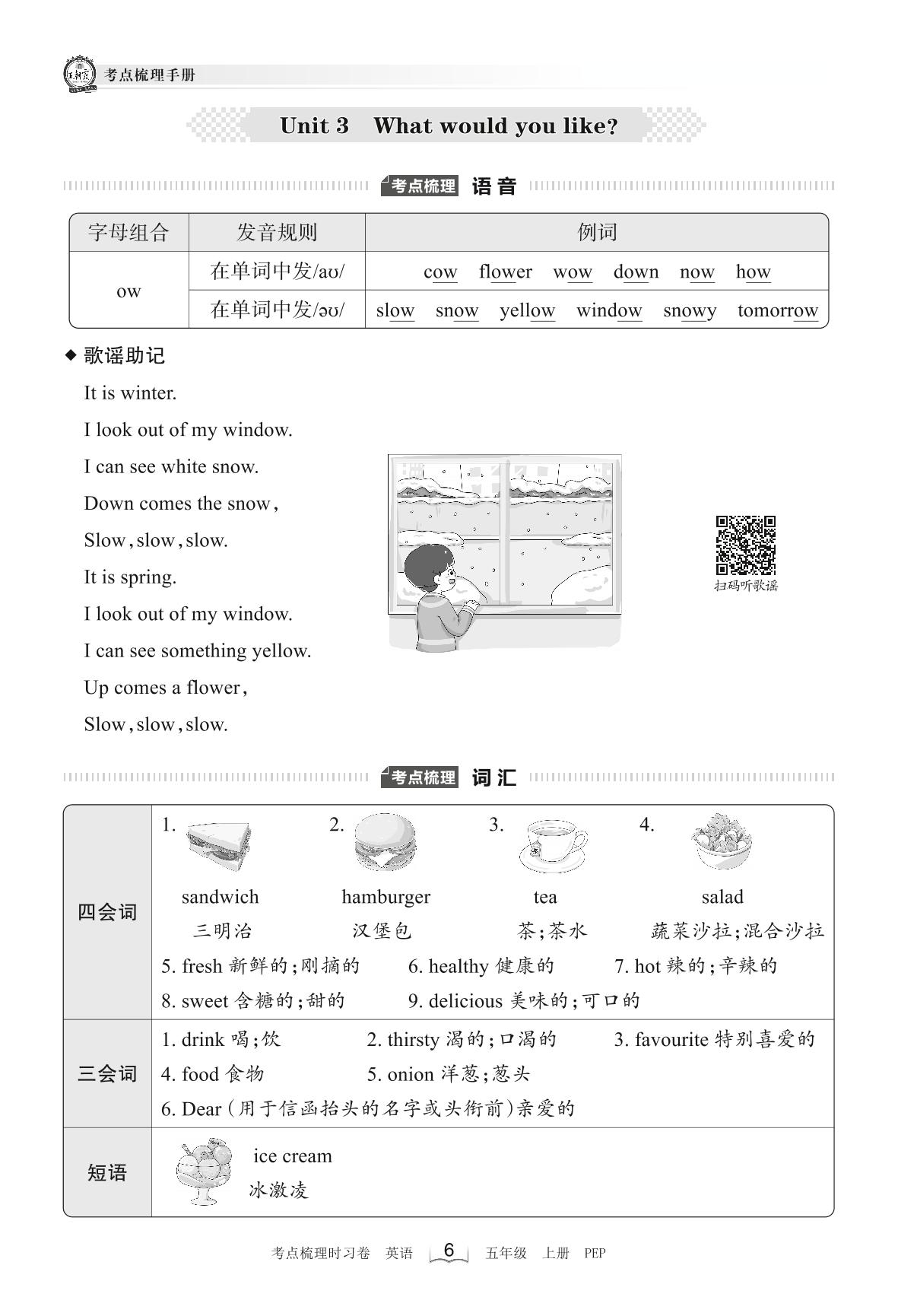 2022上册五年级英语人教PEP版 考点梳理手册——Unit 3 What would you like?