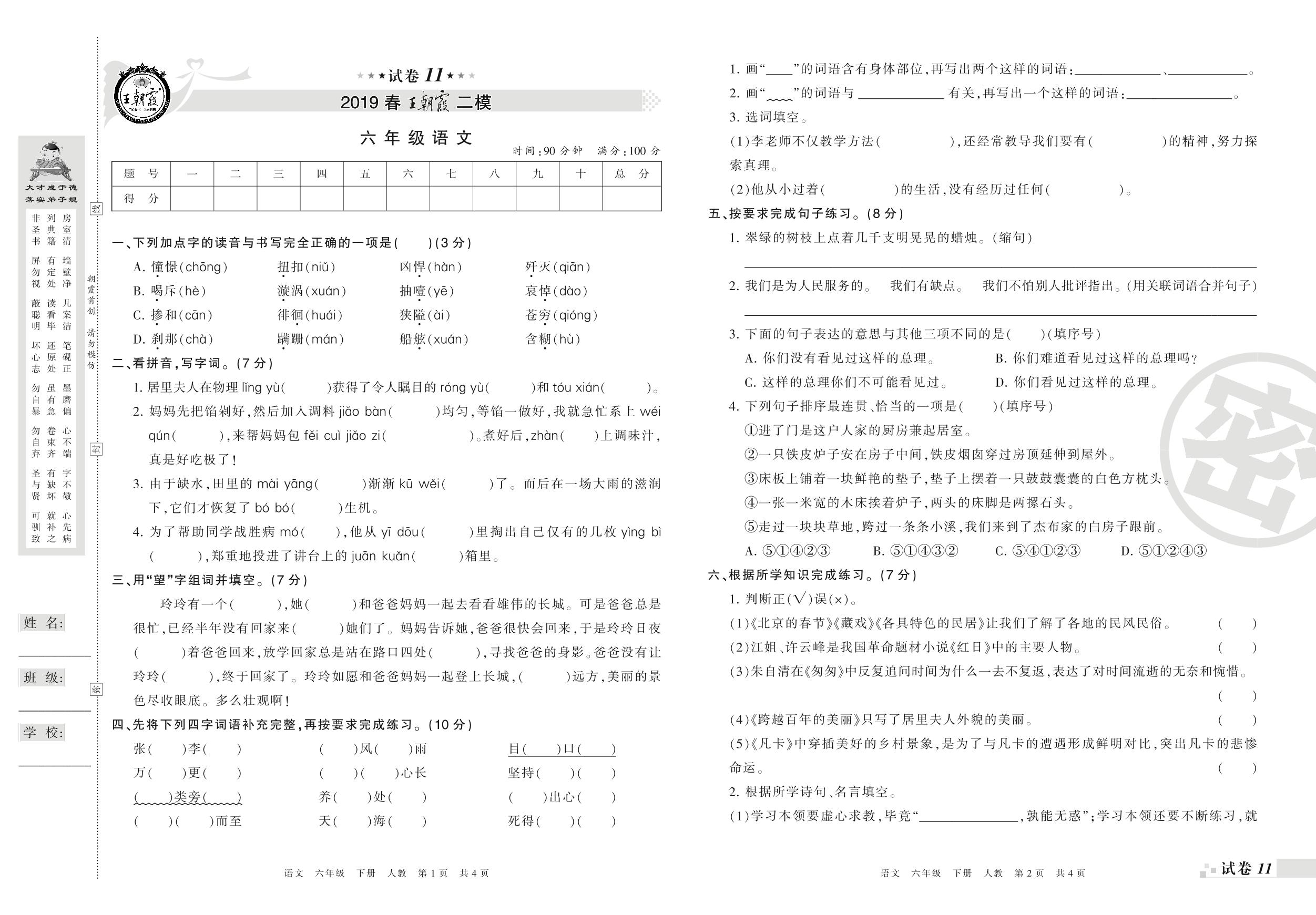 王朝霞期末模拟卷六年级下册语文(人教版)_R21080243202【11】