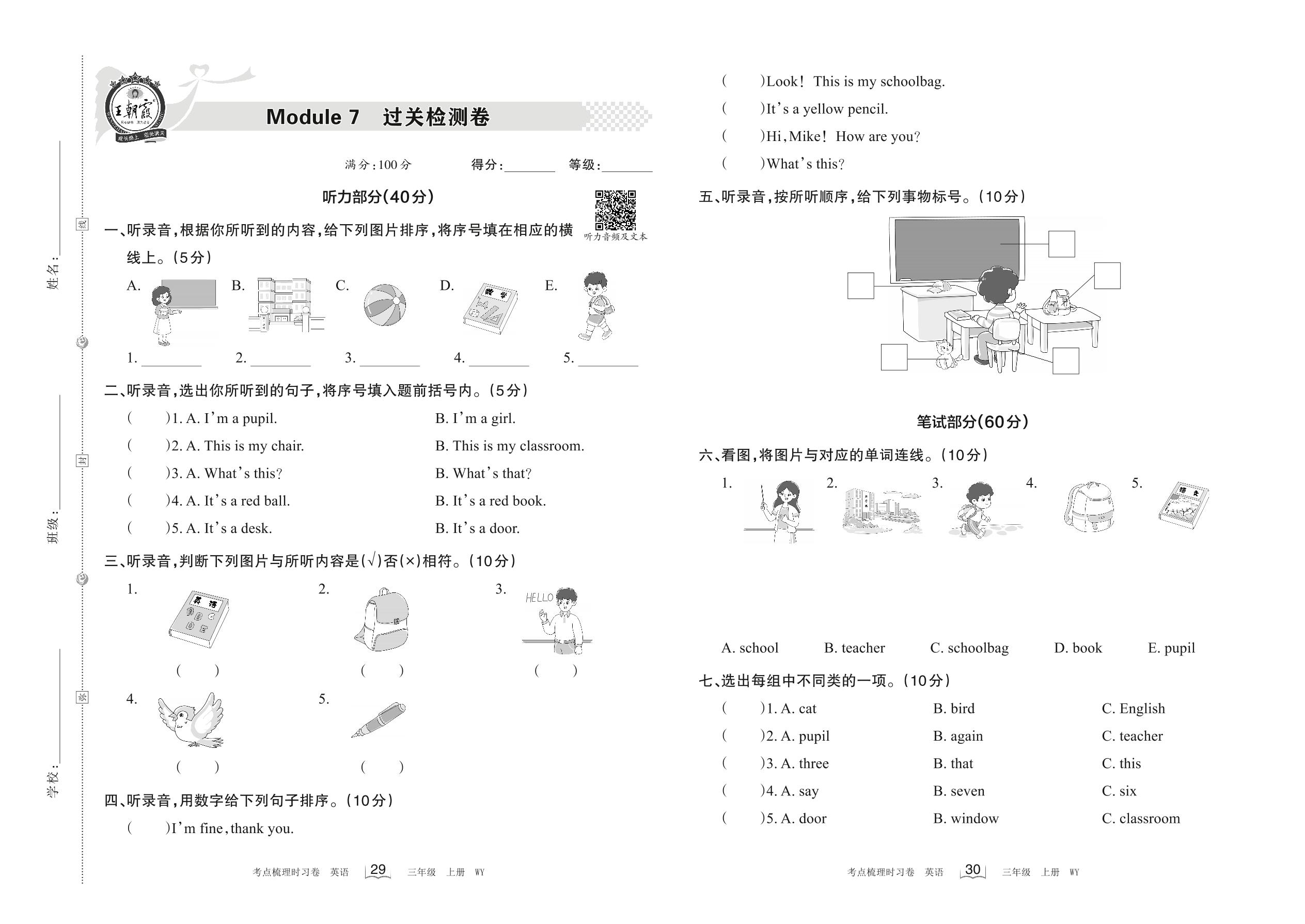 2022上册三年级英语外研版 Module 7 过关检测卷