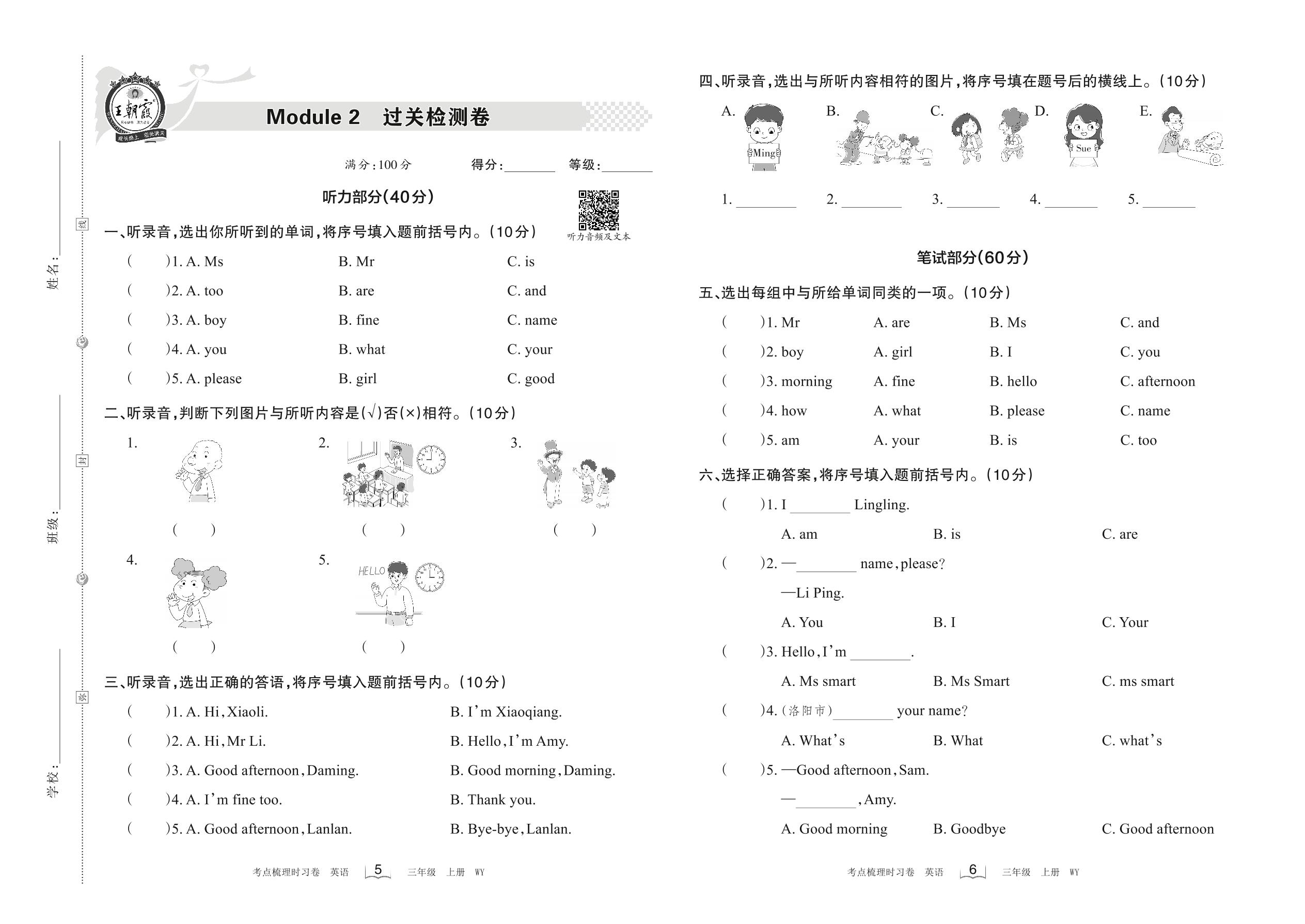 2022上册三年级英语外研版 Module 2 过关检测卷