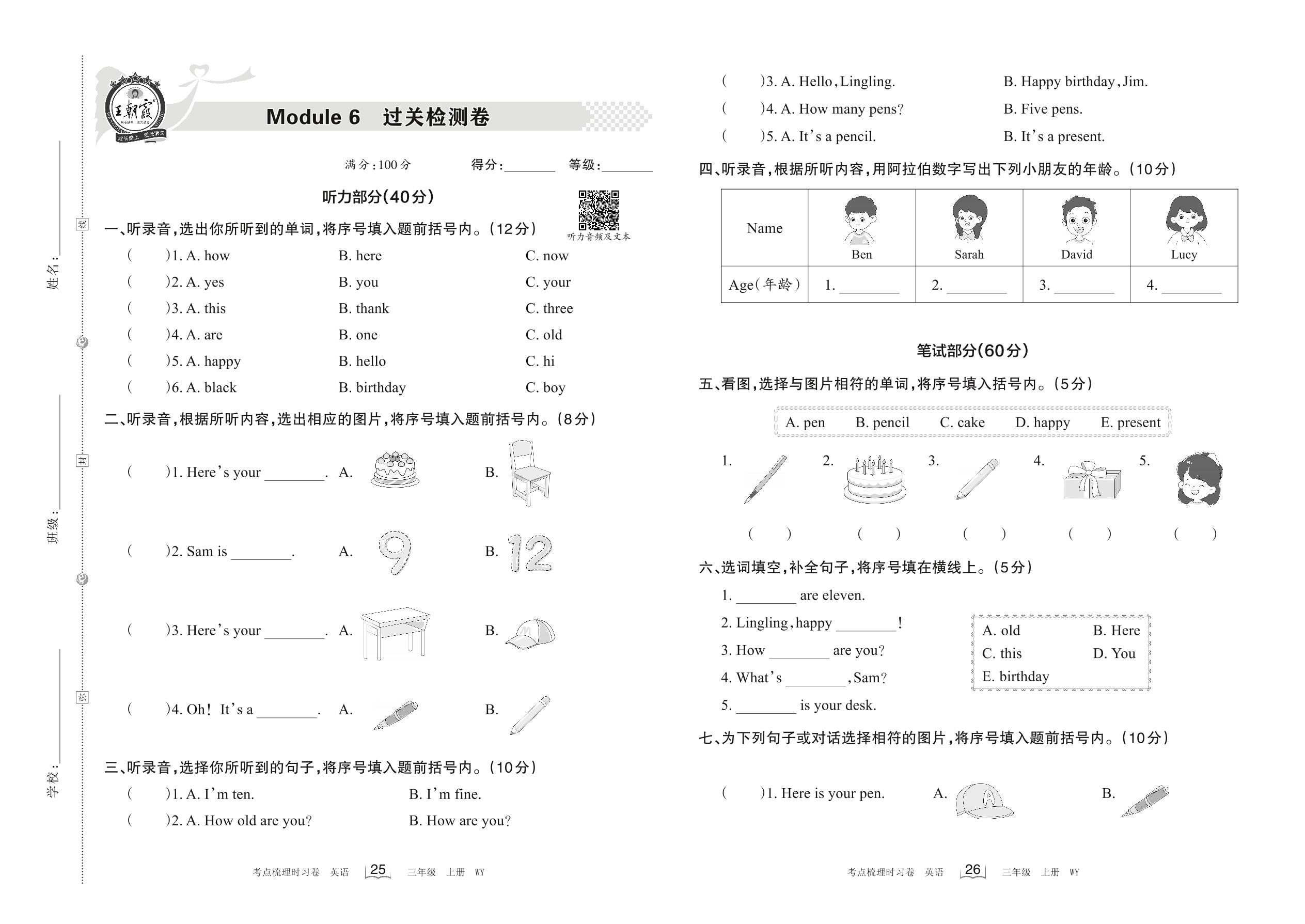 2022上册三年级英语外研版 Module 6 过关检测卷