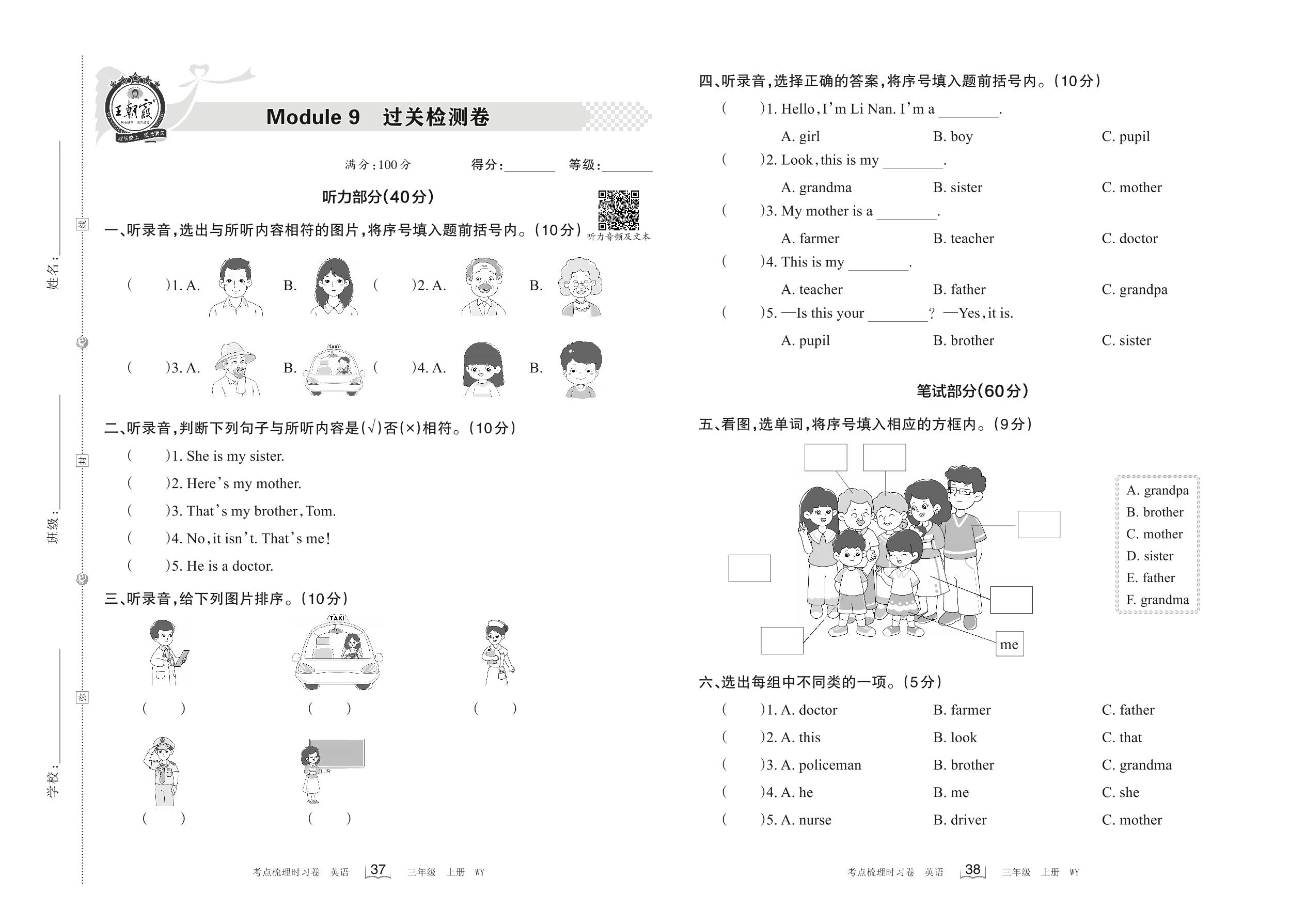 2022上册三年级英语外研版 Module 9 过关检测卷