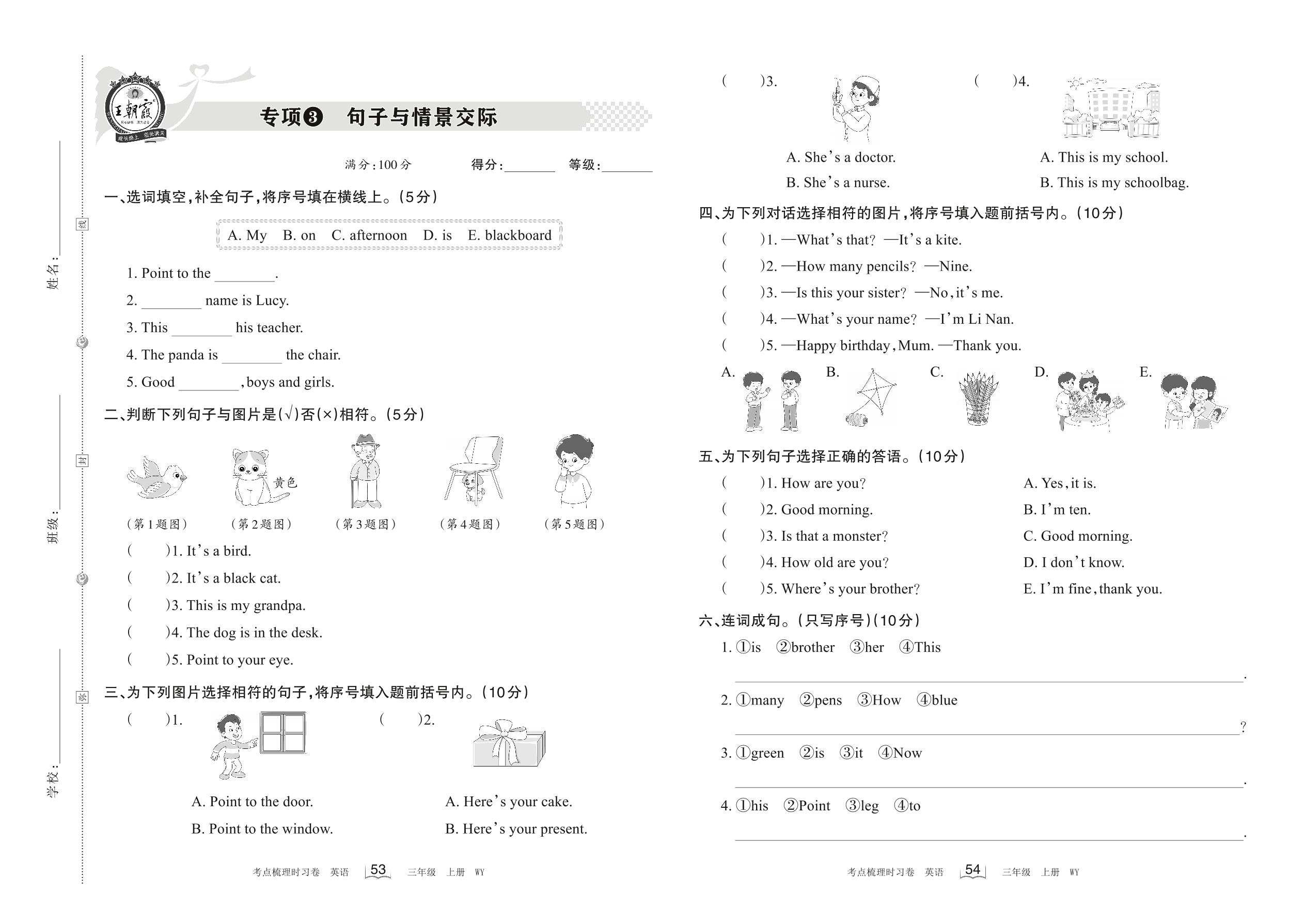 2022上册三年级英语外研版 专项3 句子与情景交际
