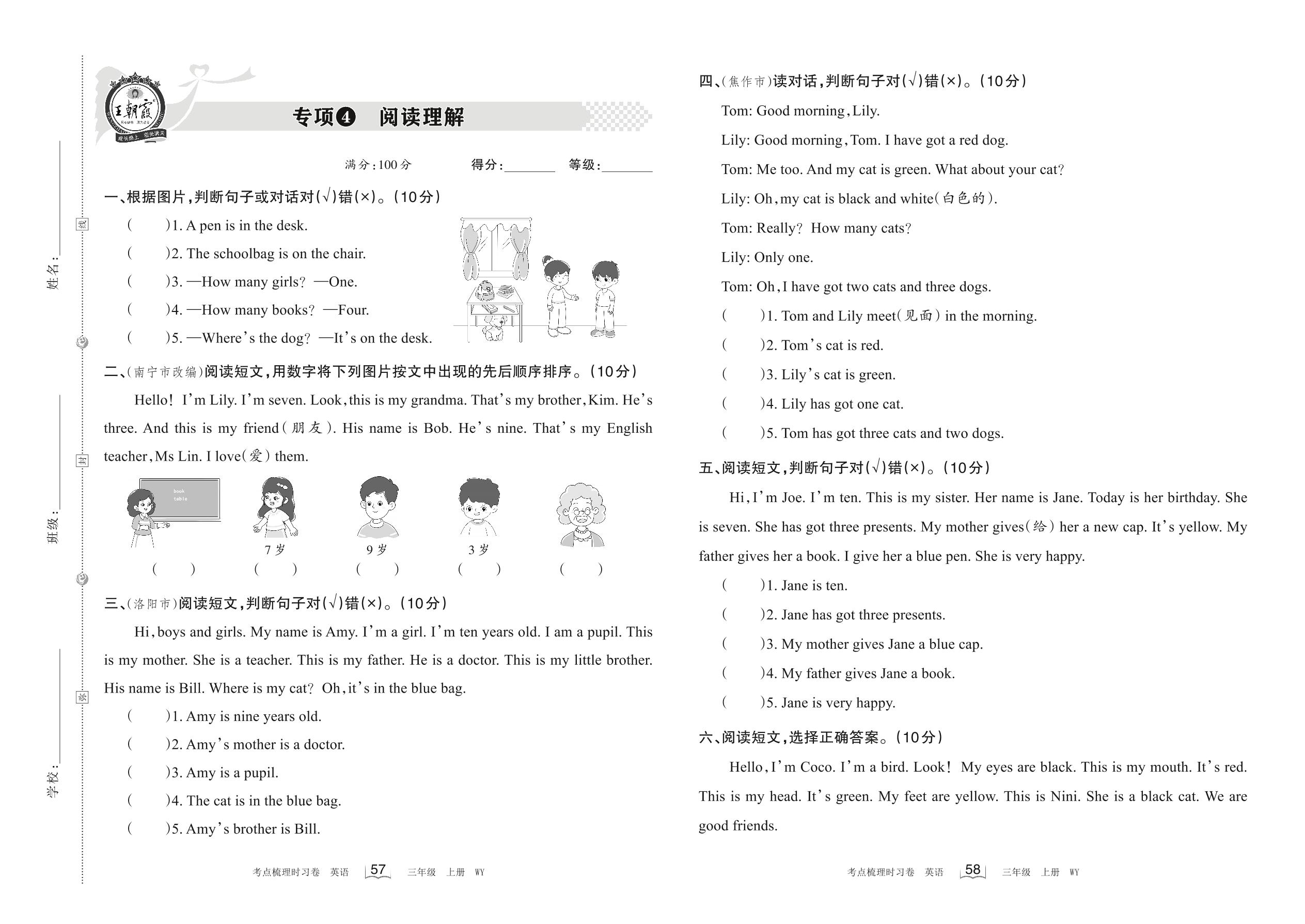 三年级英语外研版(三起始)上册专项卷