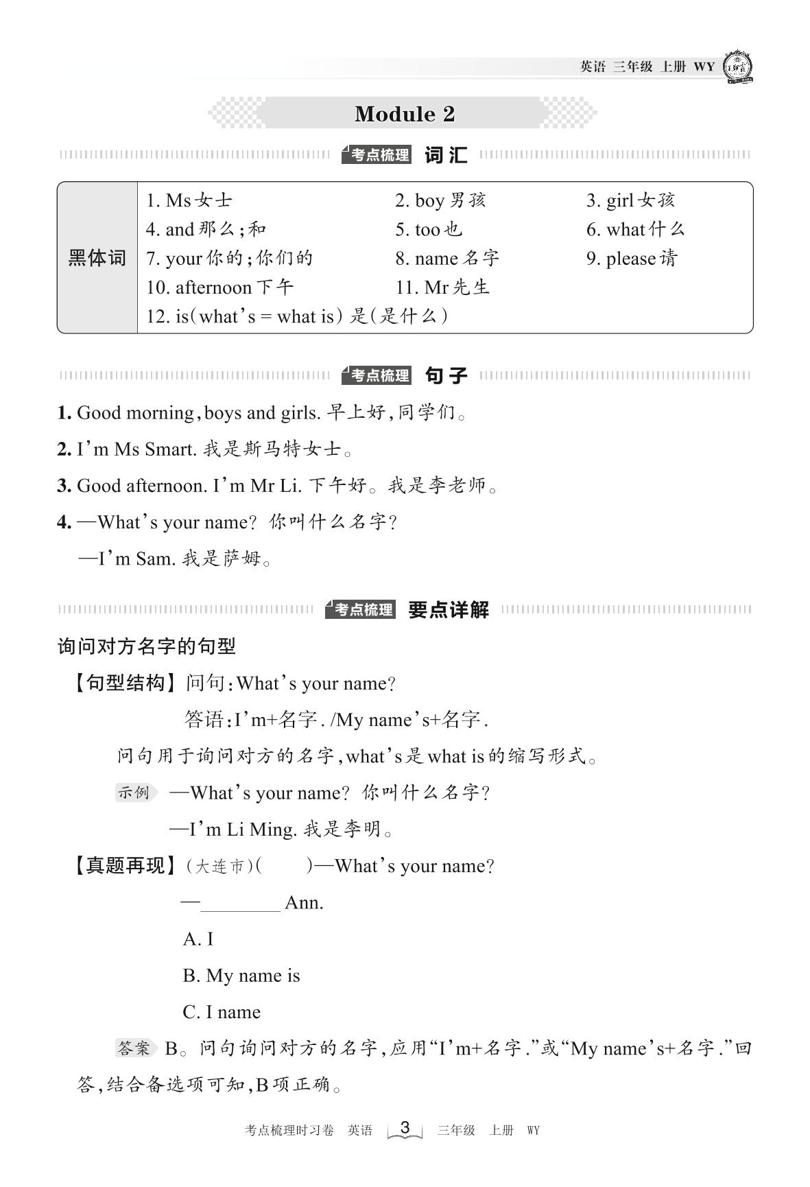 2022上册三年级英语外研版 考点梳理手册——Module 2