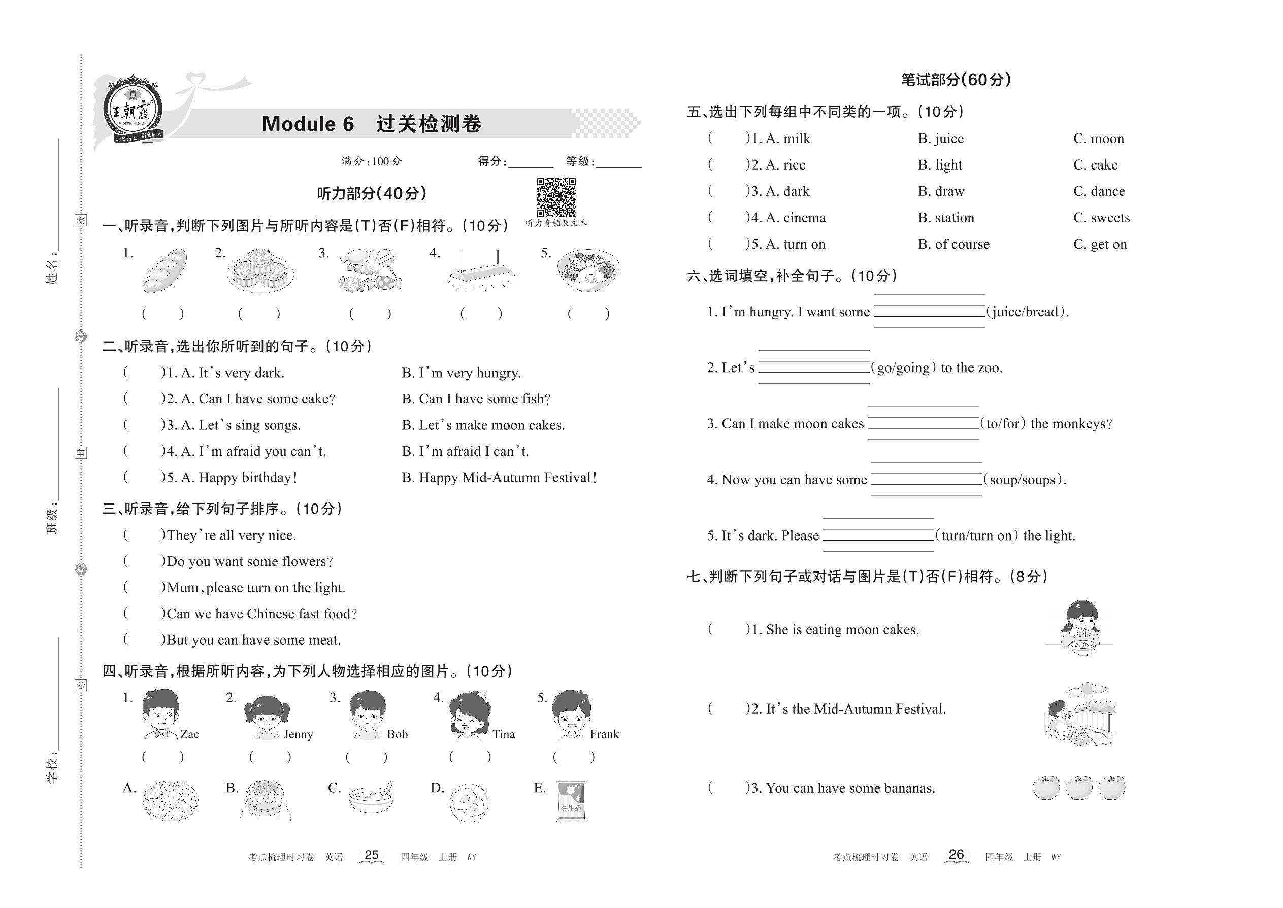 2022上册四年级英语外研版 Module 6 过关检测卷