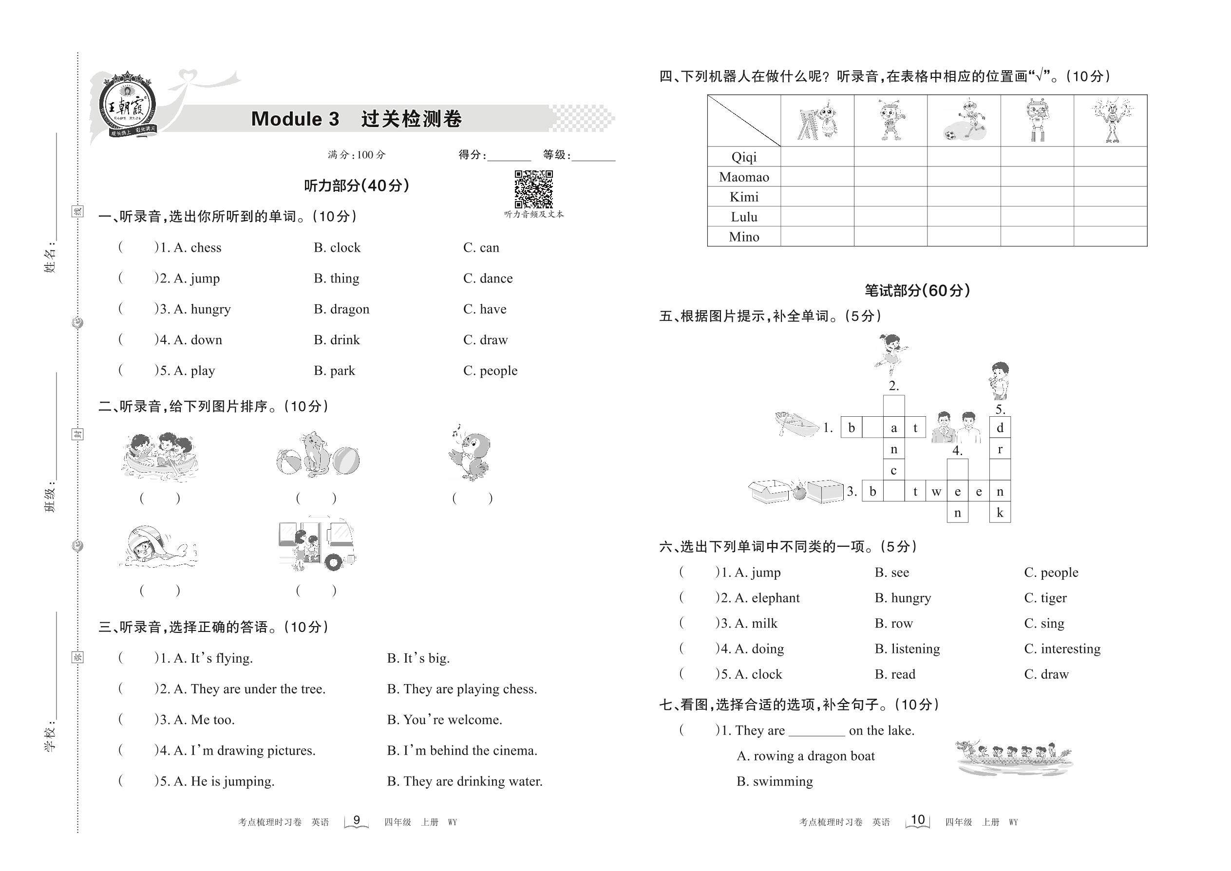 2022上册四年级英语外研版 Module 3 过关检测卷