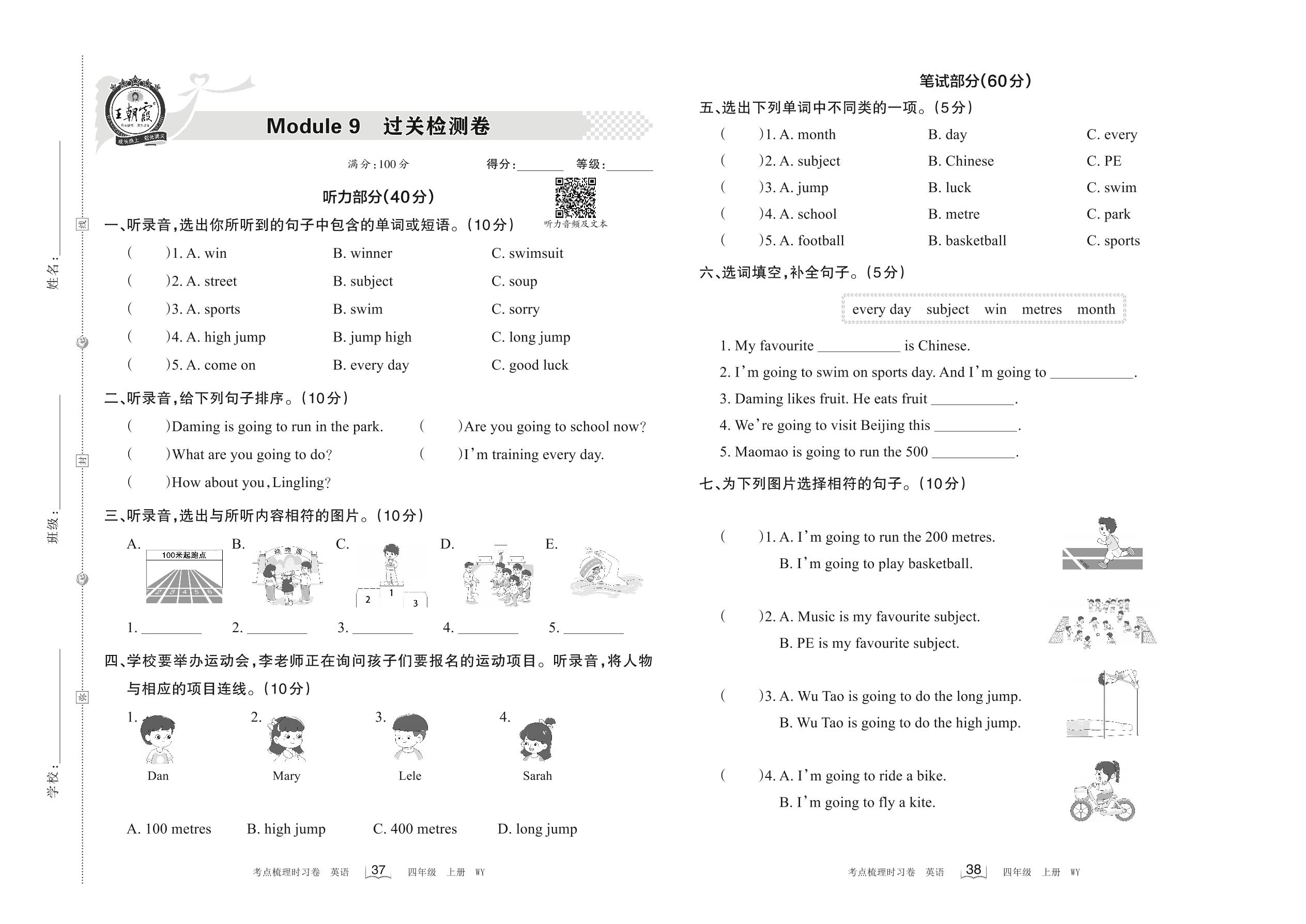2022上册四年级英语外研版 Module 9 过关检测卷