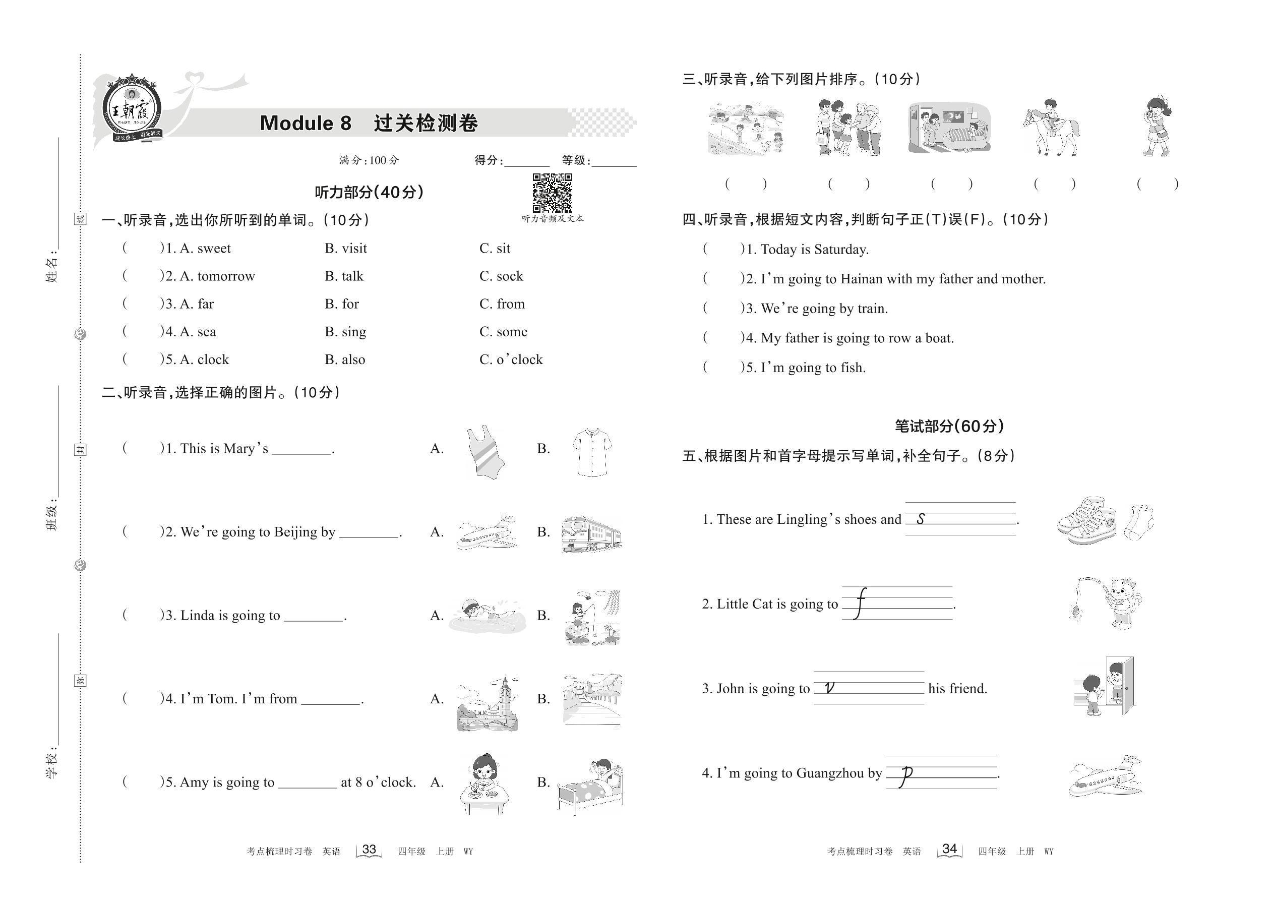 2022上册四年级英语外研版 Module 8 过关检测卷