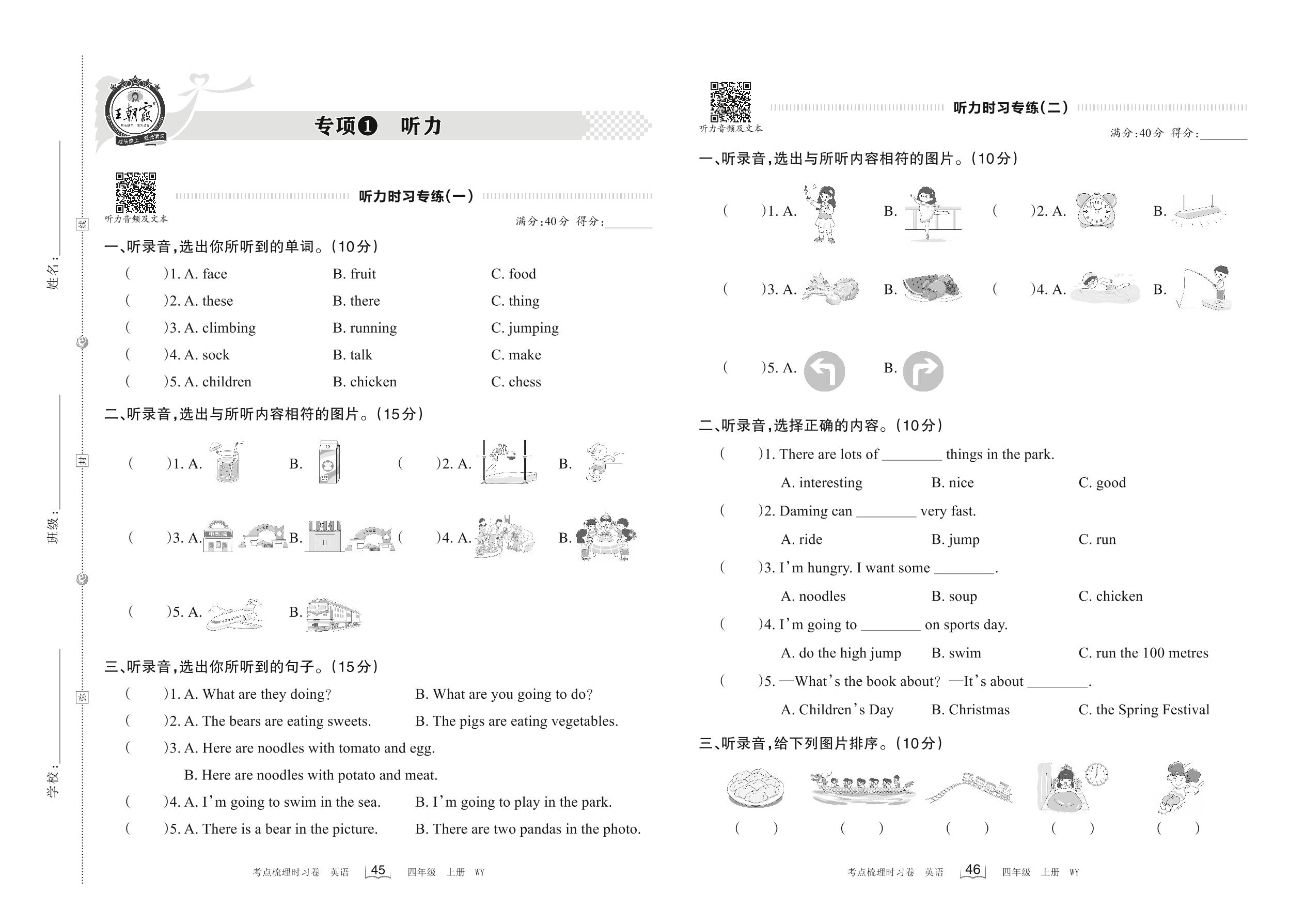 2022上册四年级英语外研版 专项1 听力