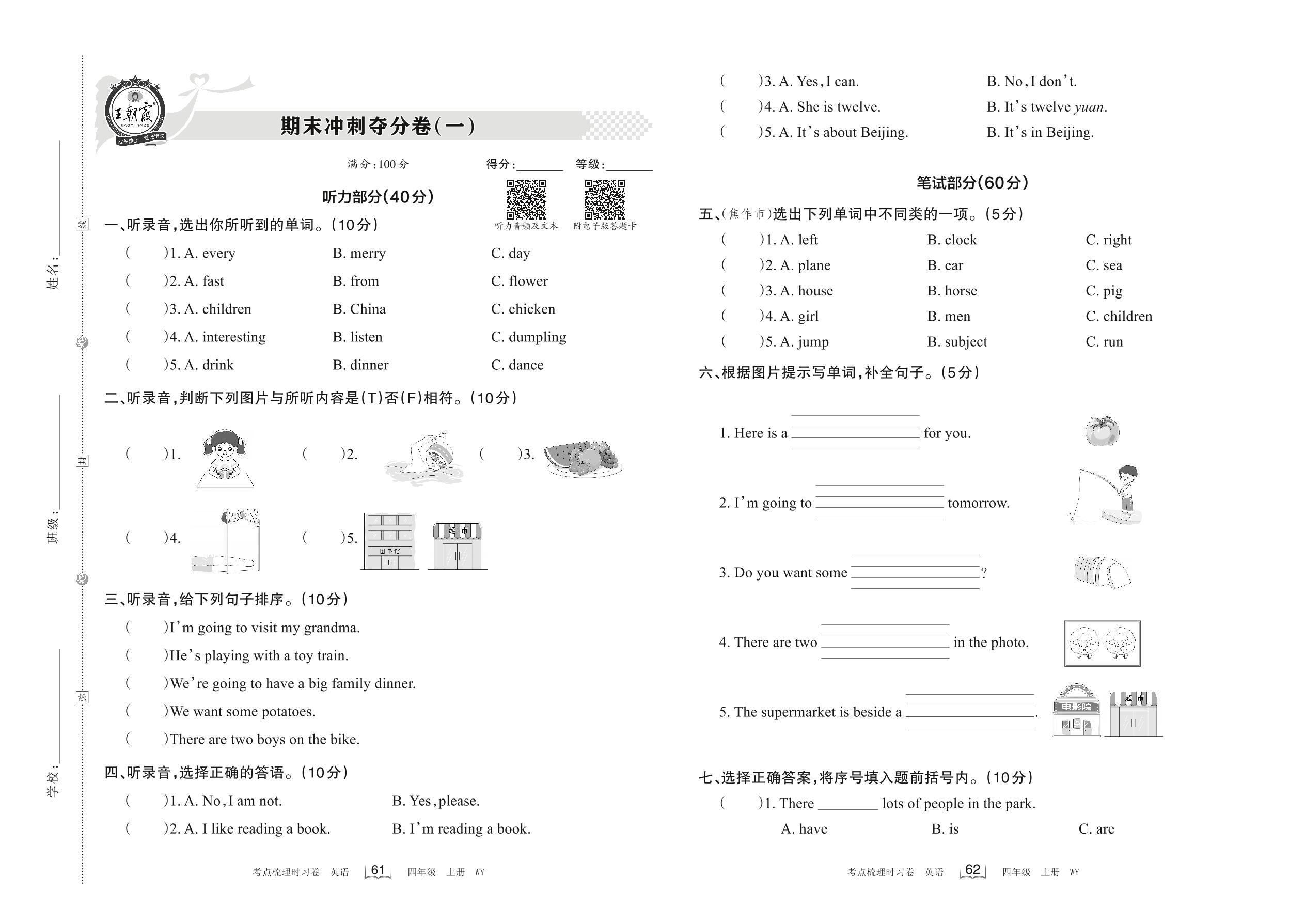 2022上册四年级英语外研版 期末冲刺夺分卷(一)
