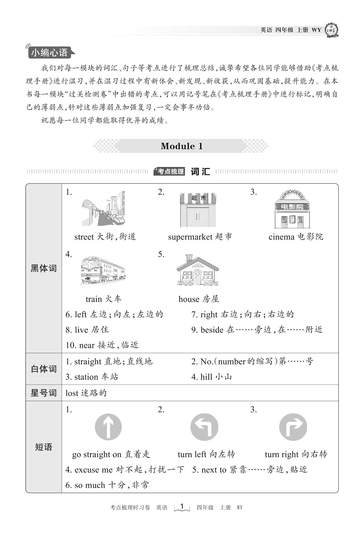 2022上册四年级英语外研版 考点梳理手册