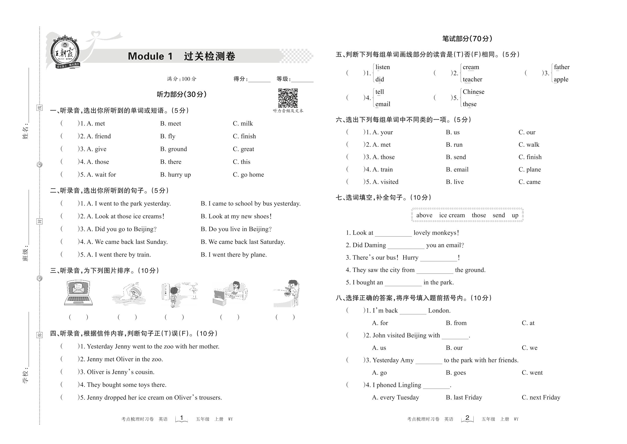 五年级英语外研版(三起始)上册单元卷