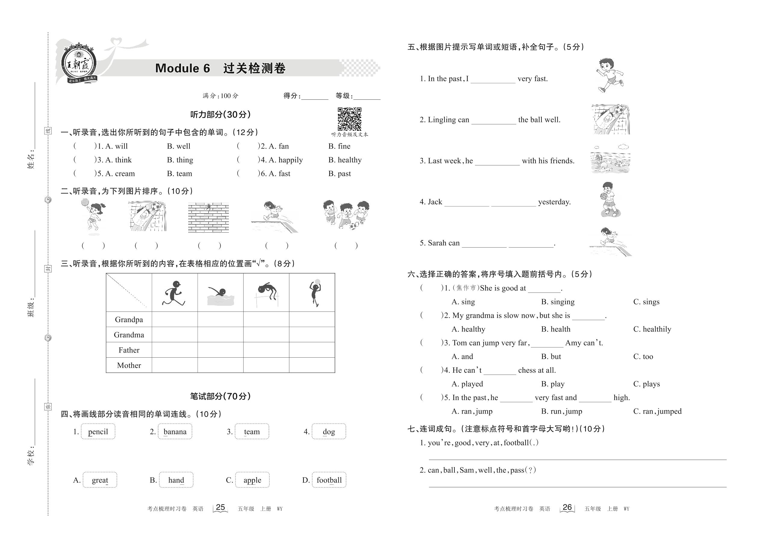 2022上册五年级英语外研版 Module 6 过关检测卷