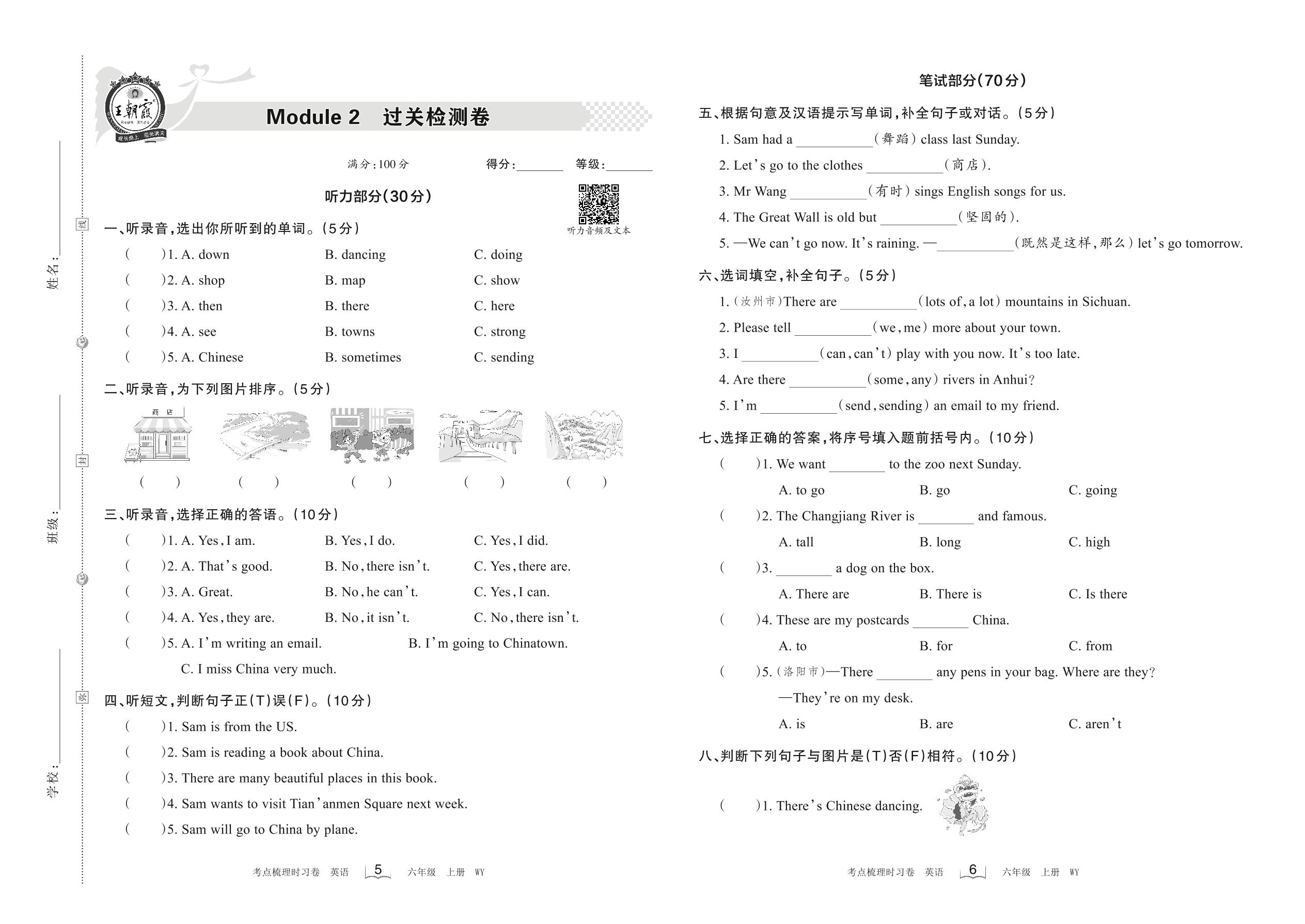 六年级英语外研版(三起始)上册单元卷