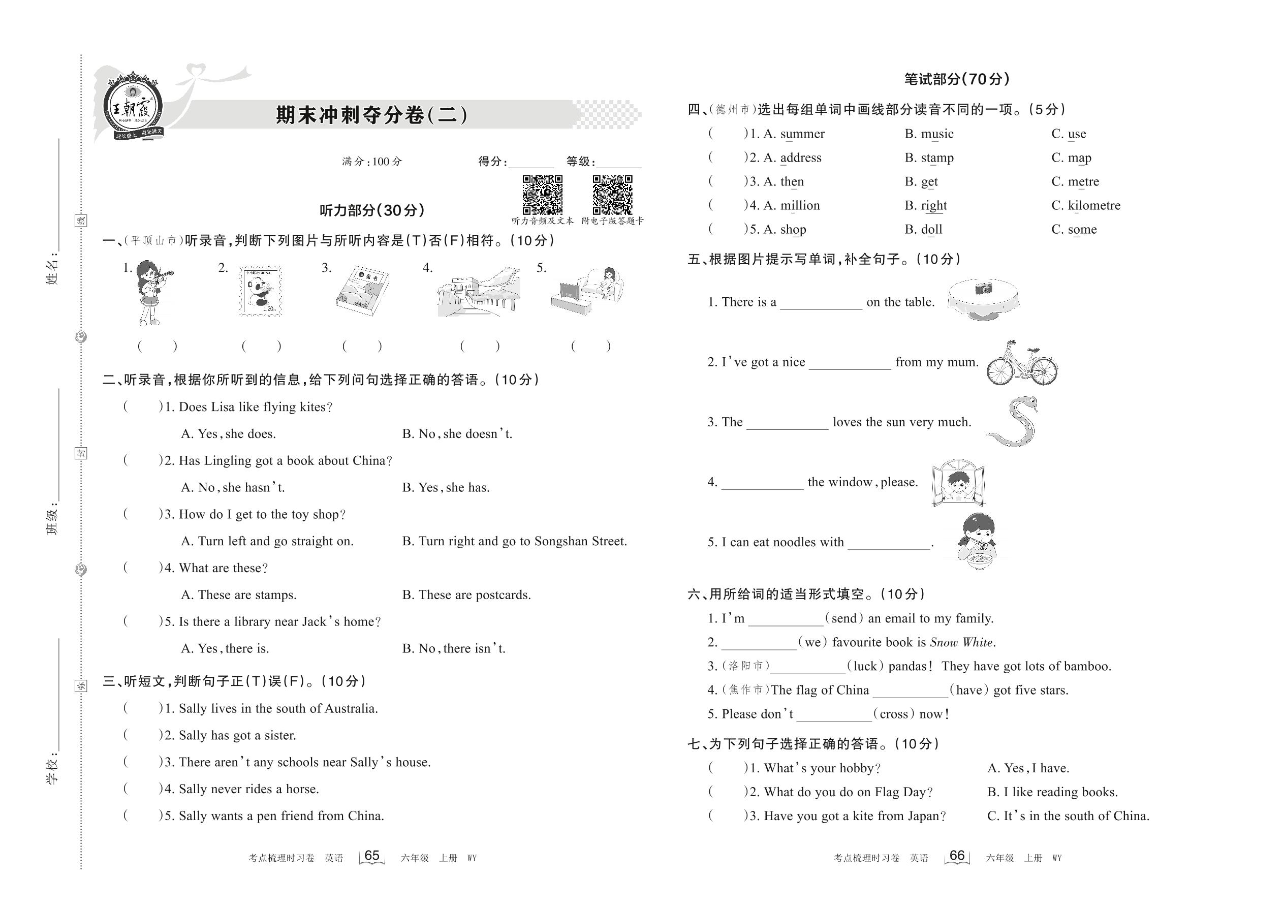 2022上册六年级英语外研版 期末冲刺夺分卷(二)