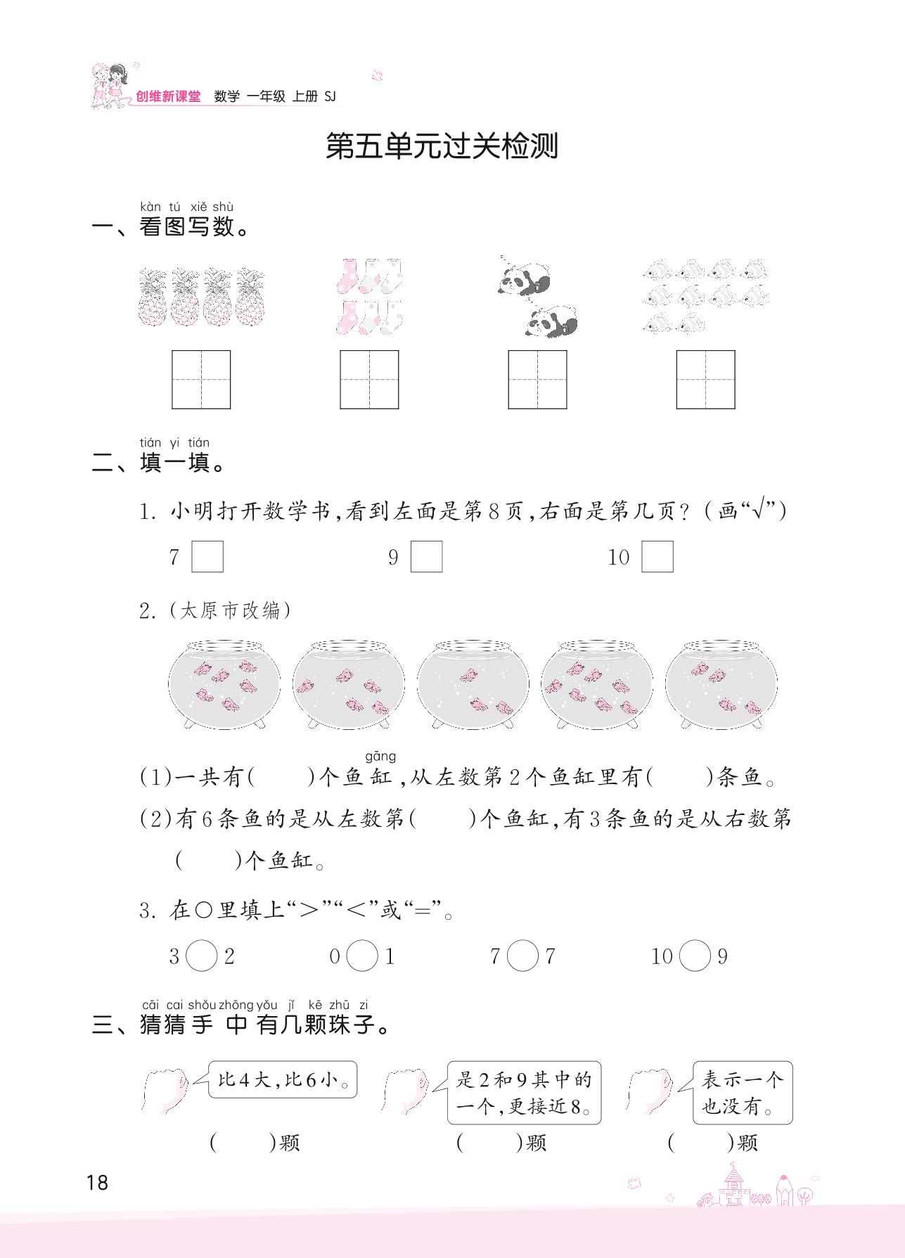 2022上册一年级数学苏教版 五 认识10以内的数——第五单元过关检测