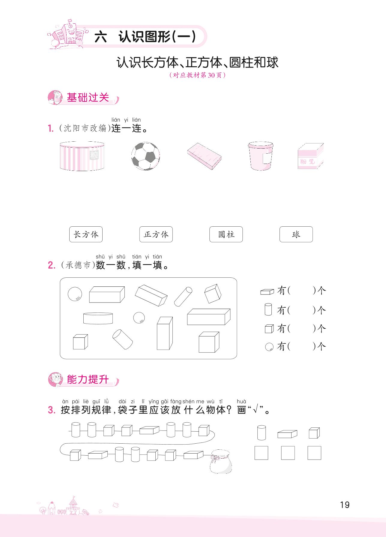 2022上册一年级数学苏教版 六 认识图形(一)——认识长方体、正方体、圆柱和球