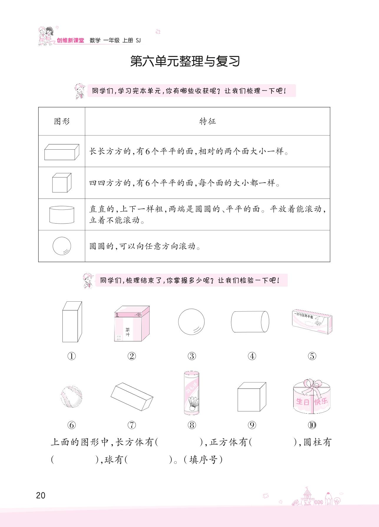2022上册一年级数学苏教版 六 认识图形(一)——第六单元整理与复习