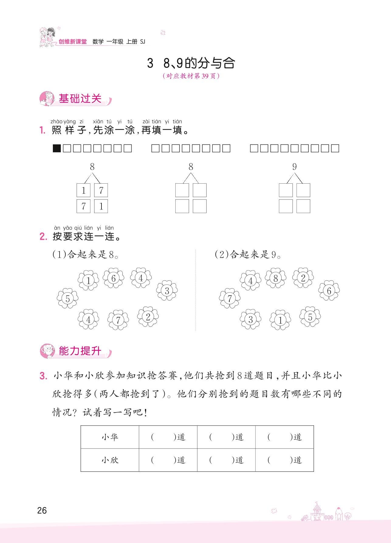 2022上册一年级数学苏教版 七 分与合——3 8、9的分与合