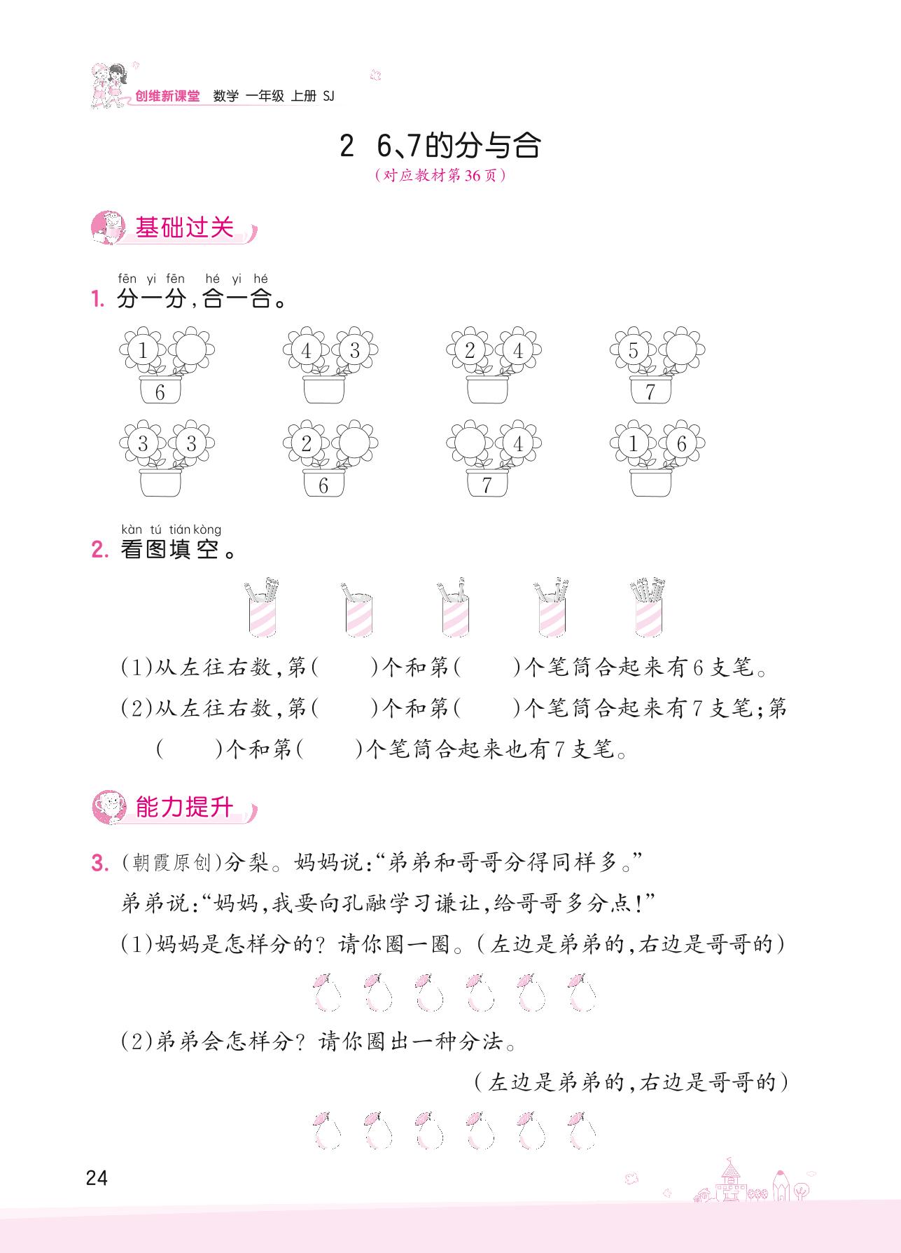 2022上册一年级数学苏教版 七 分与合——2 6、7的分与合