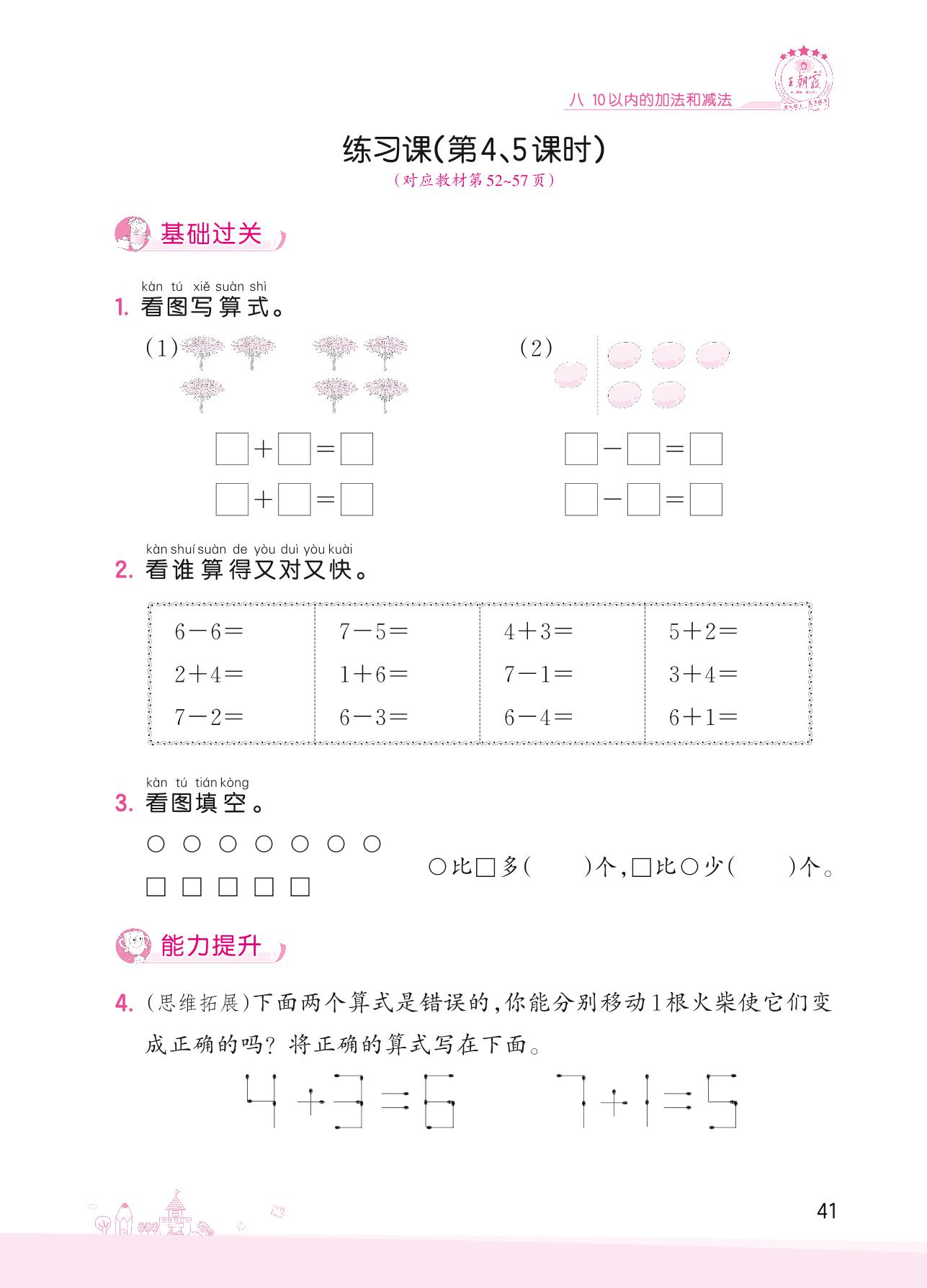 2022上册一年级数学苏教版 八 10以内的加法和减法——练习课(第4、5课时)