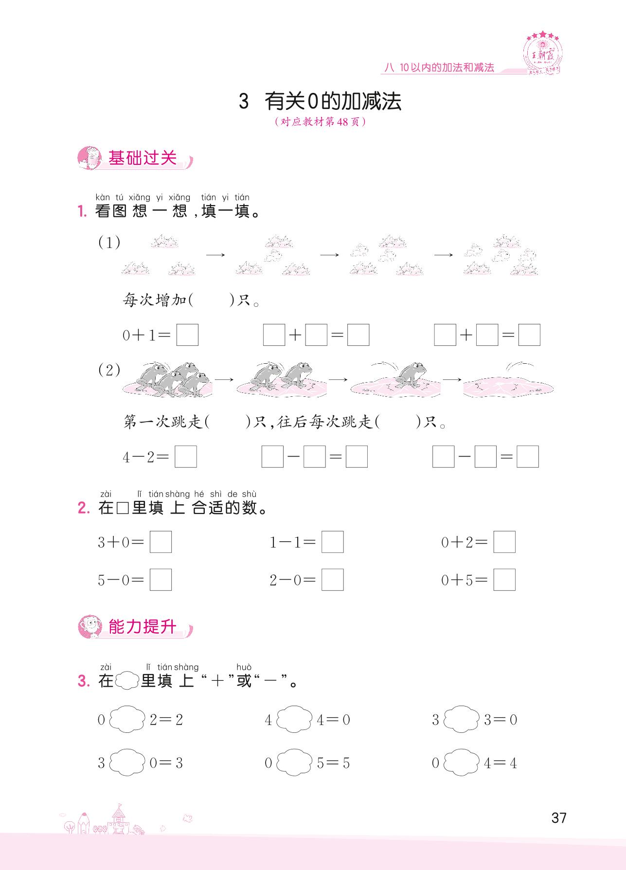 2022上册一年级数学苏教版 八 10以内的加法和减法——3 有关0的加减法