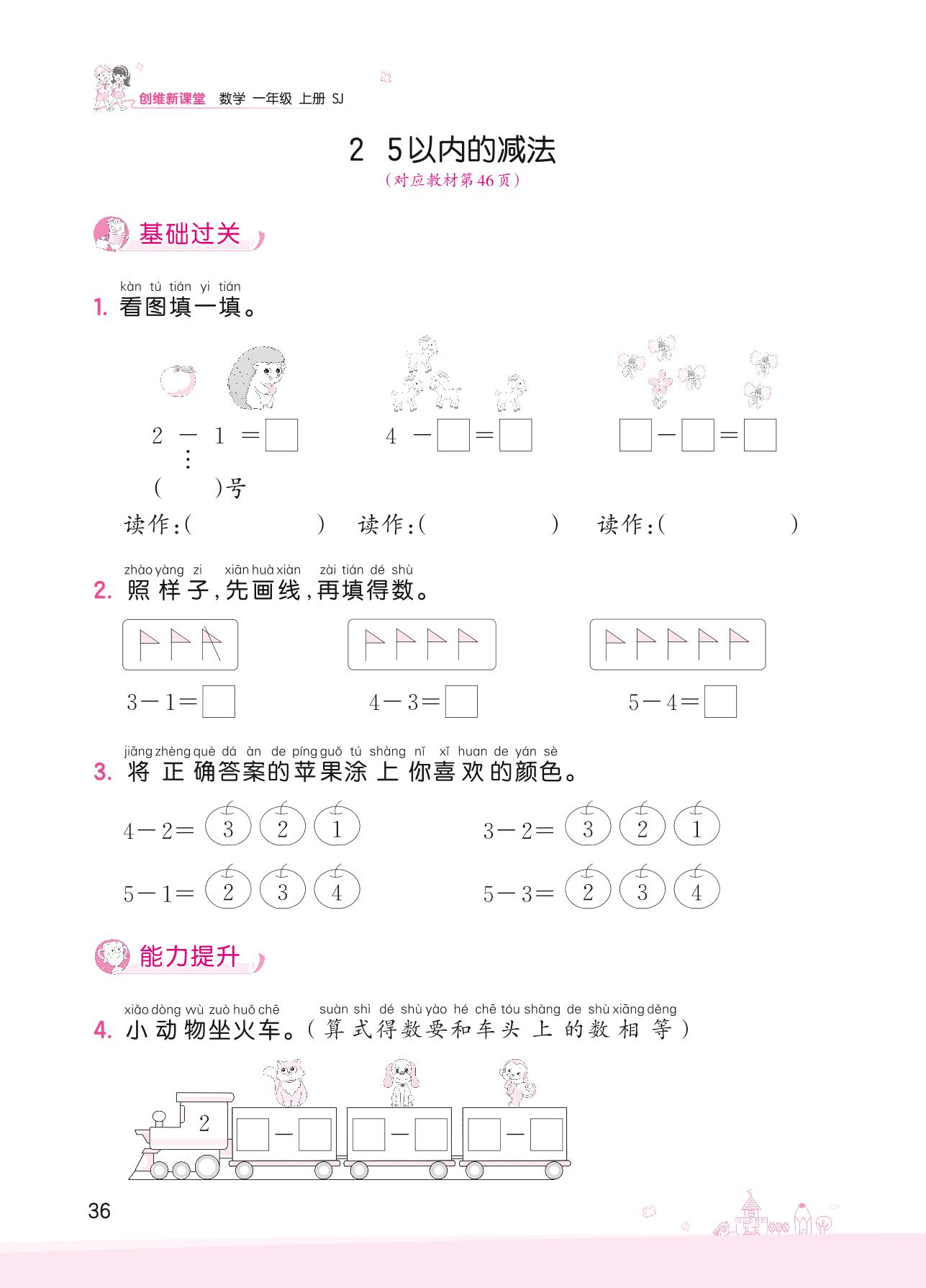 2022上册一年级数学苏教版 八 10以内的加法和减法——2 5以内的减法