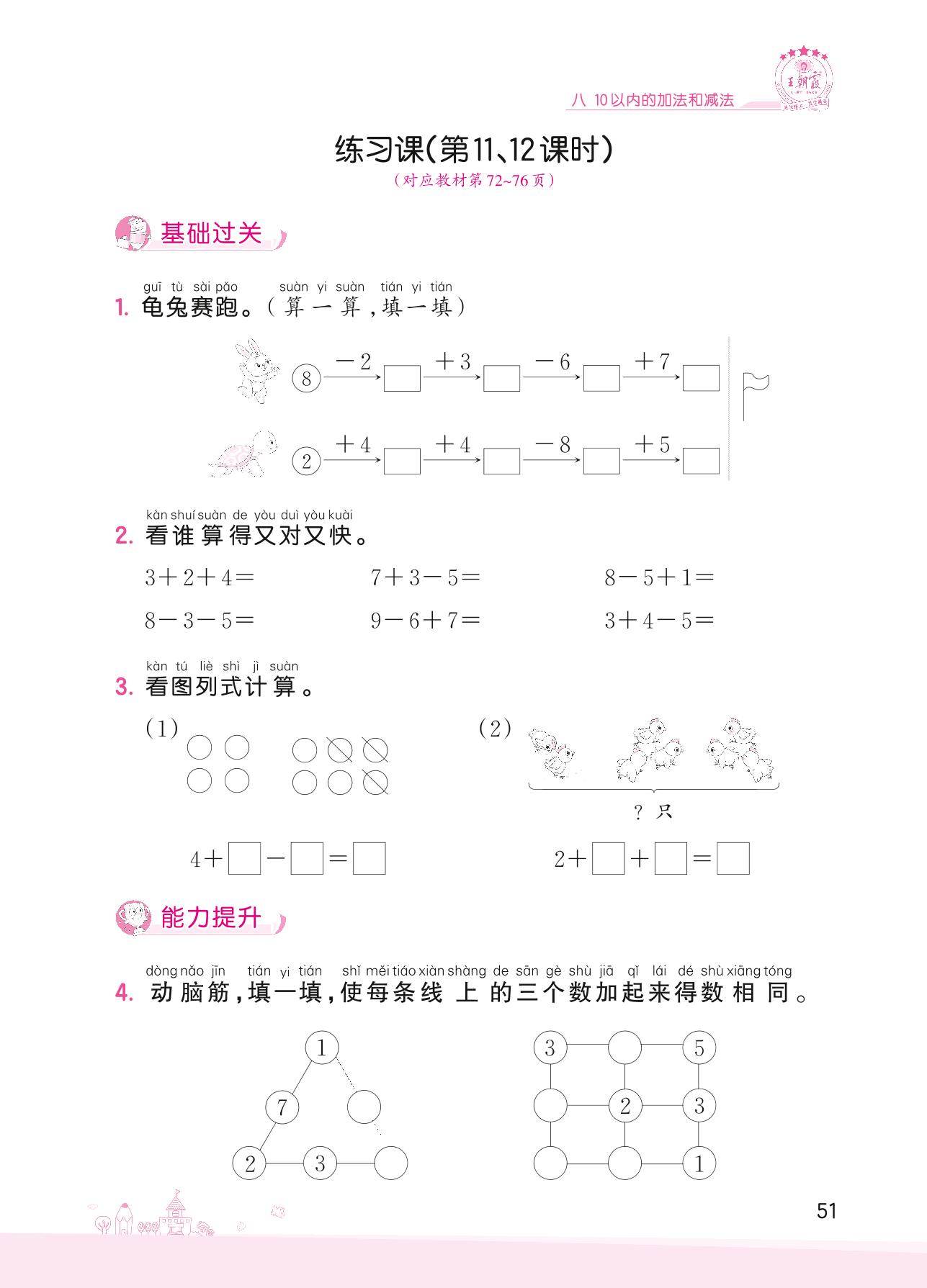 2022上册一年级数学苏教版 八 10以内的加法和减法——练习课(第11、12课时)