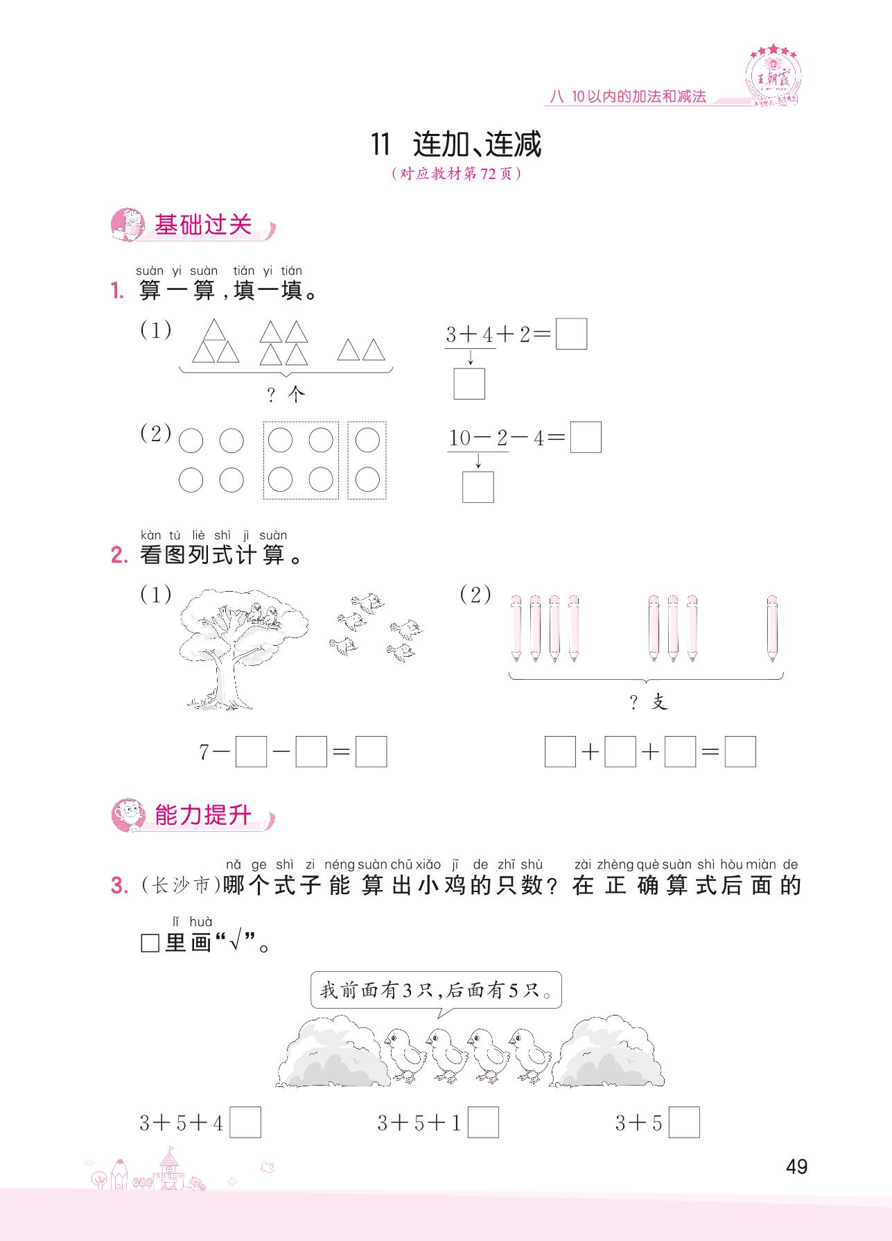 2022上册一年级数学苏教版 八 10以内的加法和减法——11 连加、连减