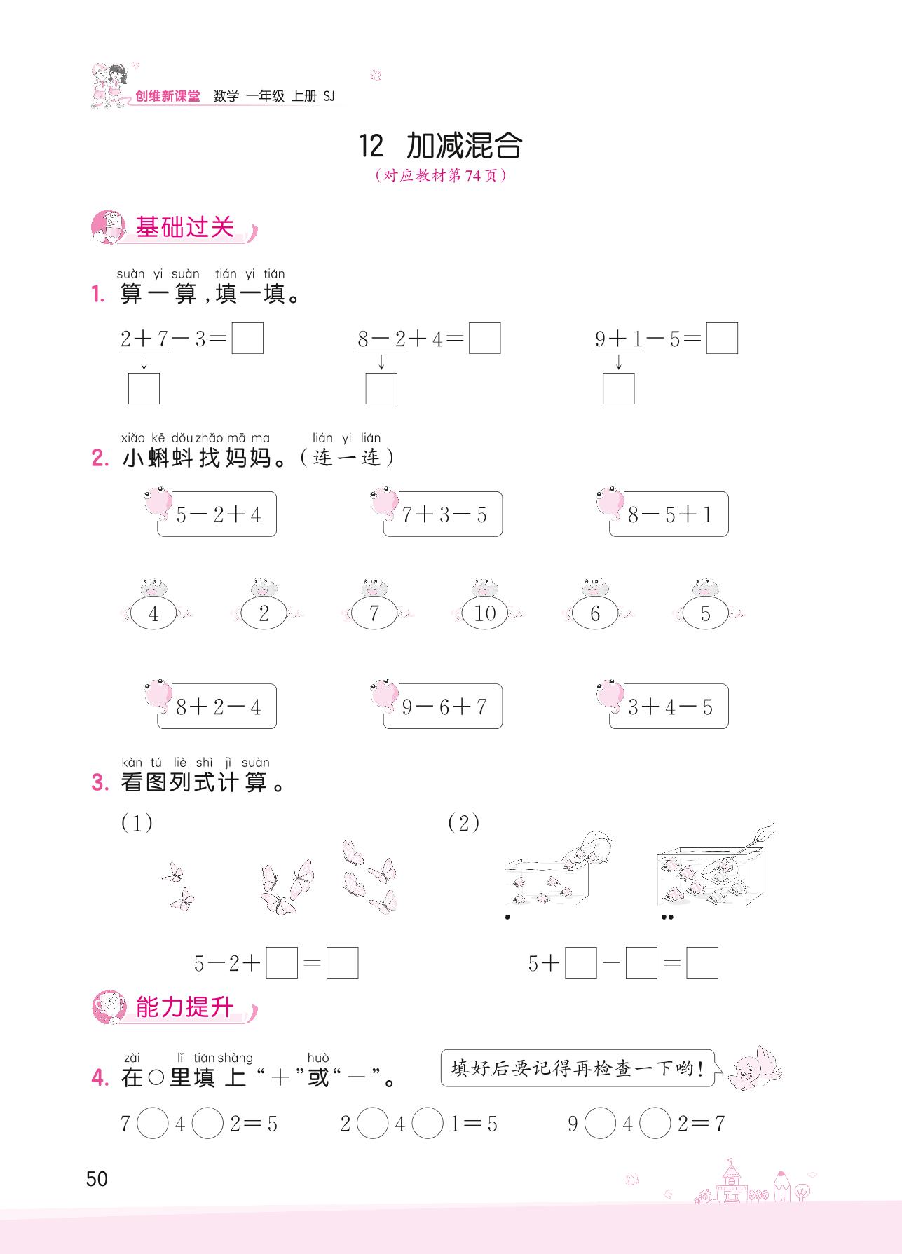 2022上册一年级数学苏教版 八 10以内的加法和减法——12 加减混合