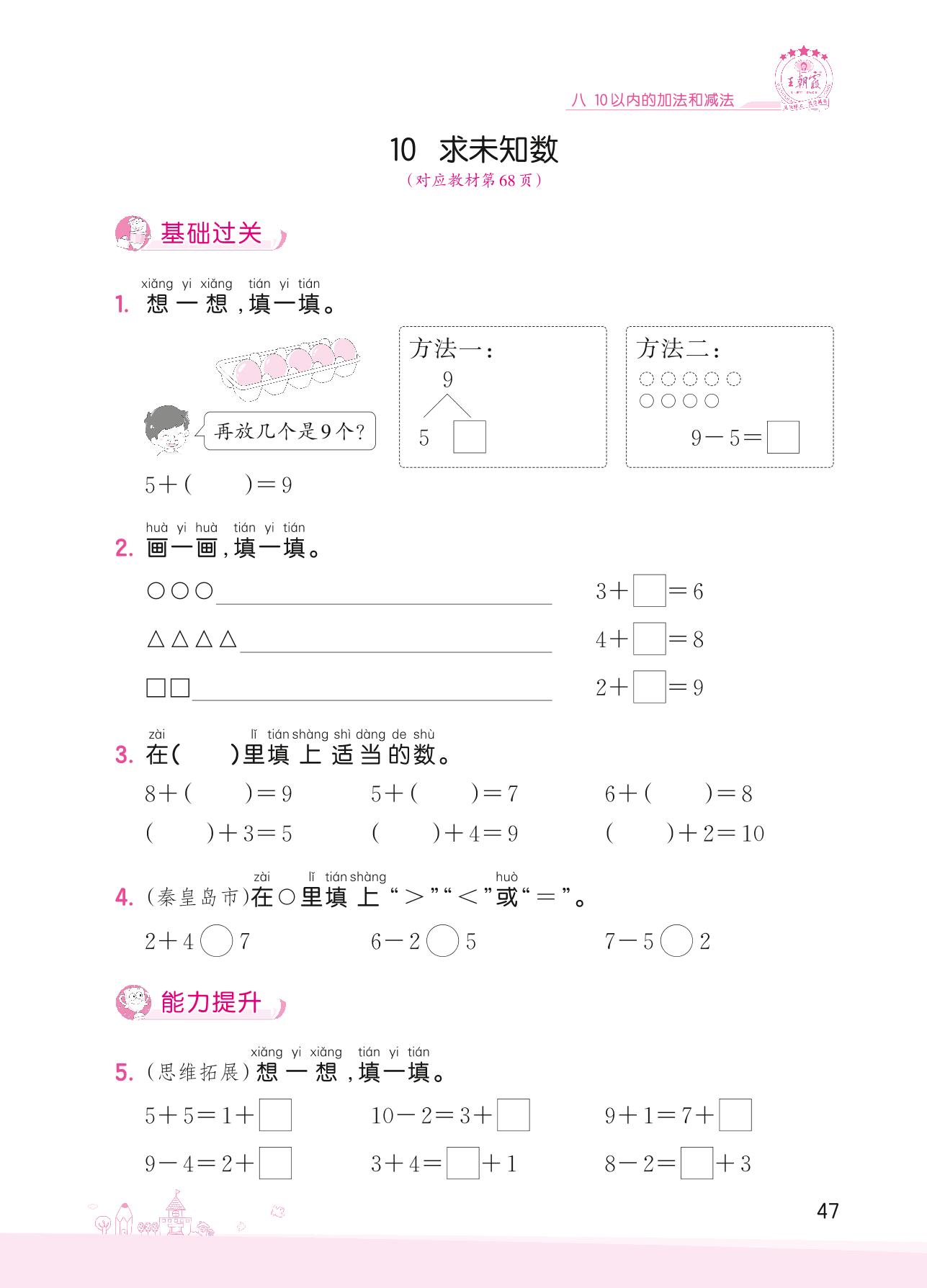 2022上册一年级数学苏教版 八 10以内的加法和减法——10 求未知数
