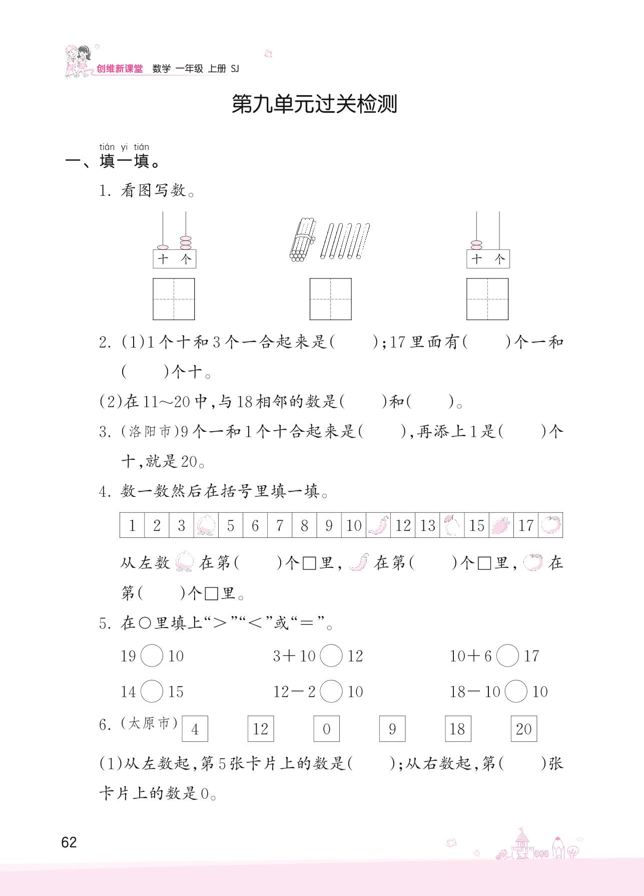 2022上册一年级数学苏教版 九 认识11~22各数——第九单元过关检测