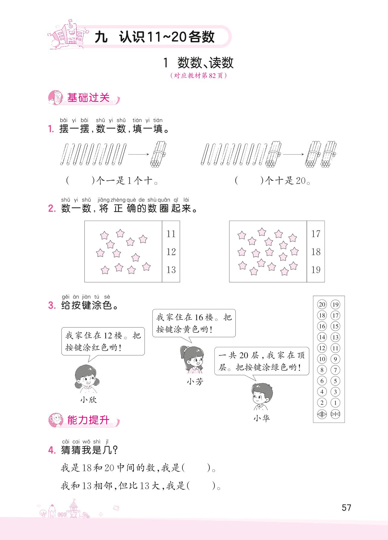 2022上册一年级数学苏教版 九 认识11~20各数——1 数数、读数