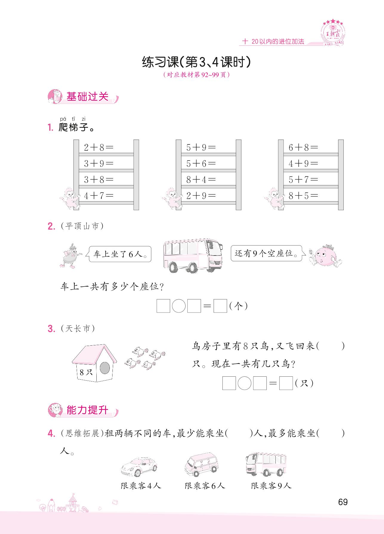 2022上册一年级数学苏教版 十 20以内的进位加法——练习课(第3、4课时)