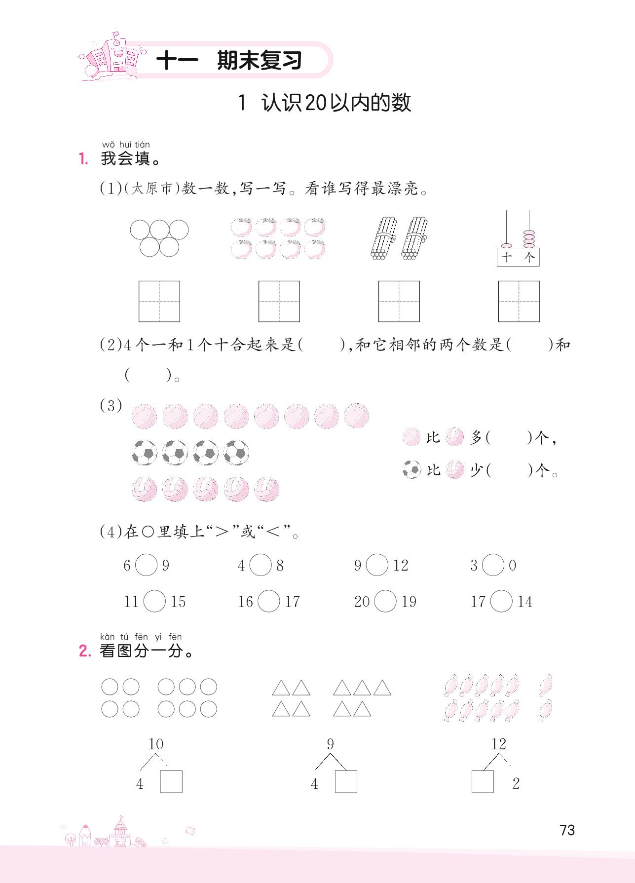 2022上册一年级数学苏教版 十一 期末复习——1 认识20以内的数