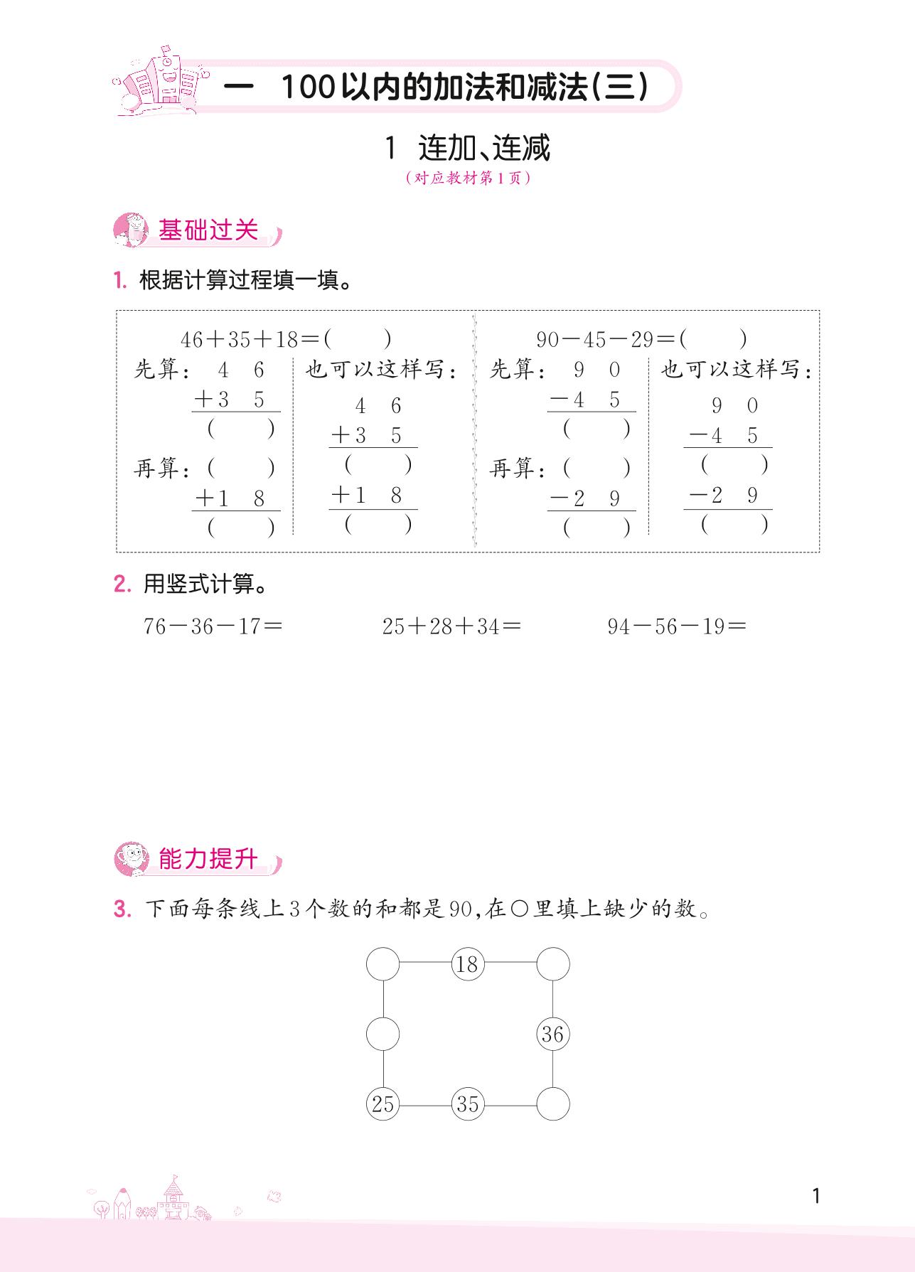 2022上册二年级数学苏教版 一 100以内的加法和减法(三)——1 连加、连减