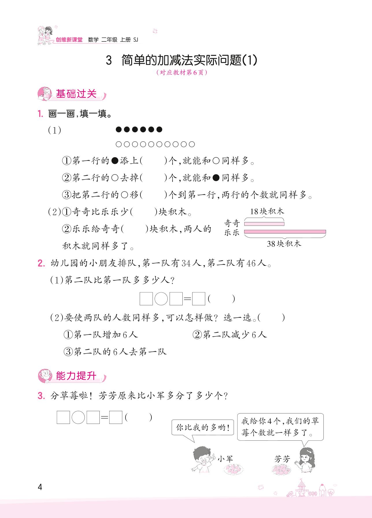 2022上册二年级数学苏教版 一 100以内的加法和减法(三)——3 简单的加减法实际问题(1)