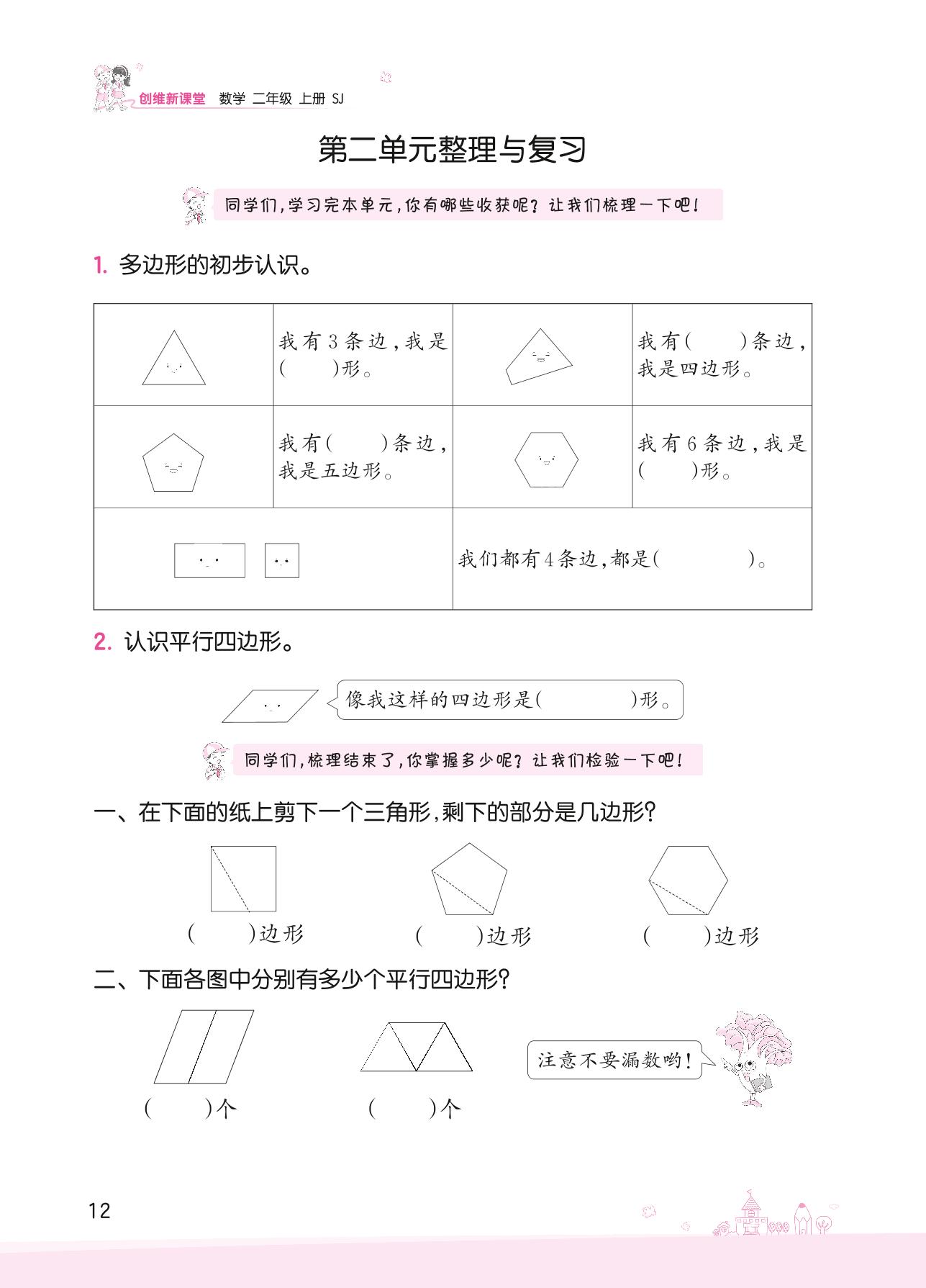 2022上册二年级数学苏教版 二 平行四边形的初步认识——第二单元整理与复习