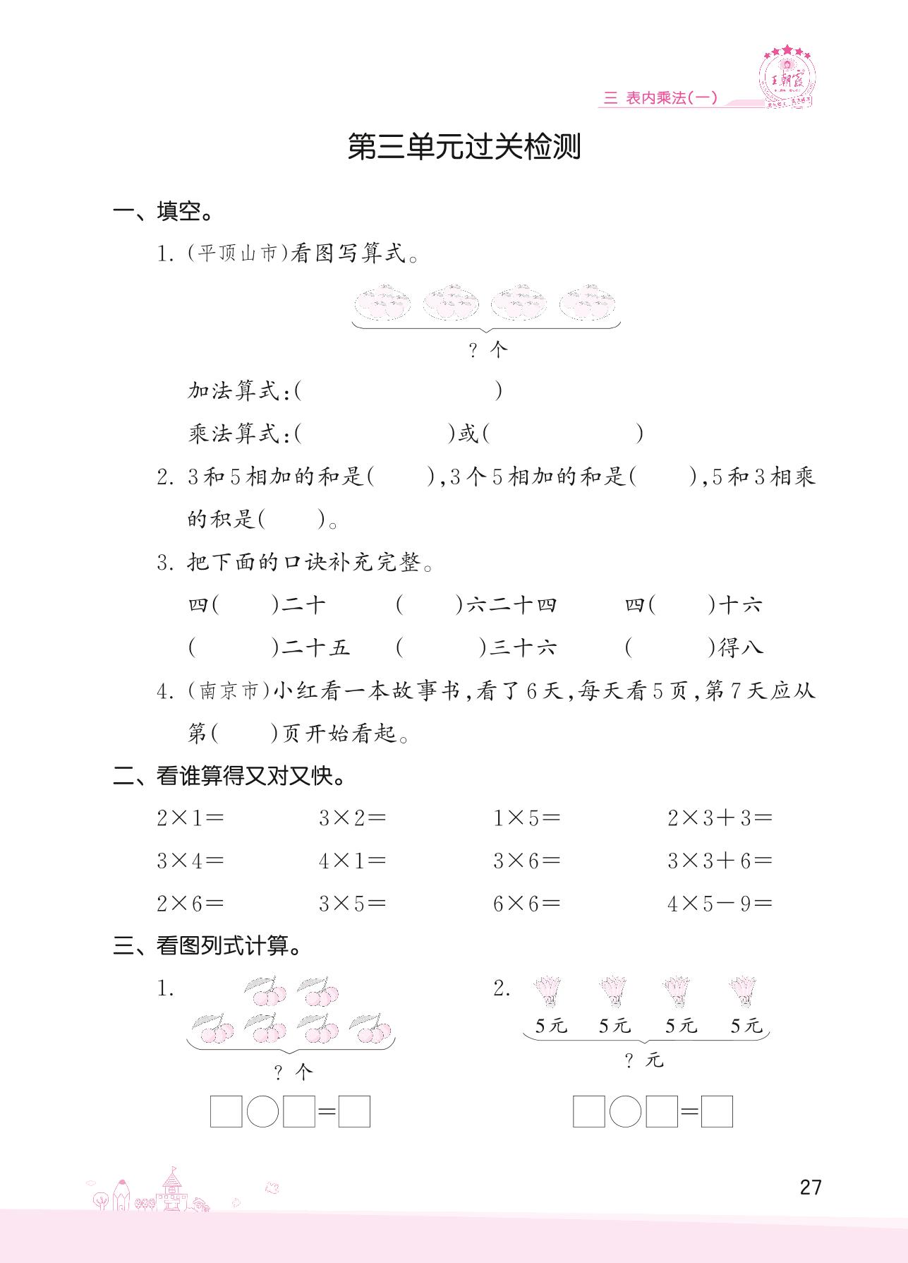 2022上册二年级数学苏教版 三 表内乘法(一)——第三单元过关检测