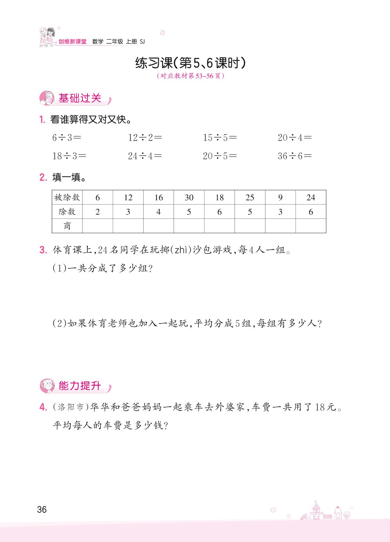 2022上册二年级数学苏教版 四 表内除法(一)——练习课(第5、6课时)