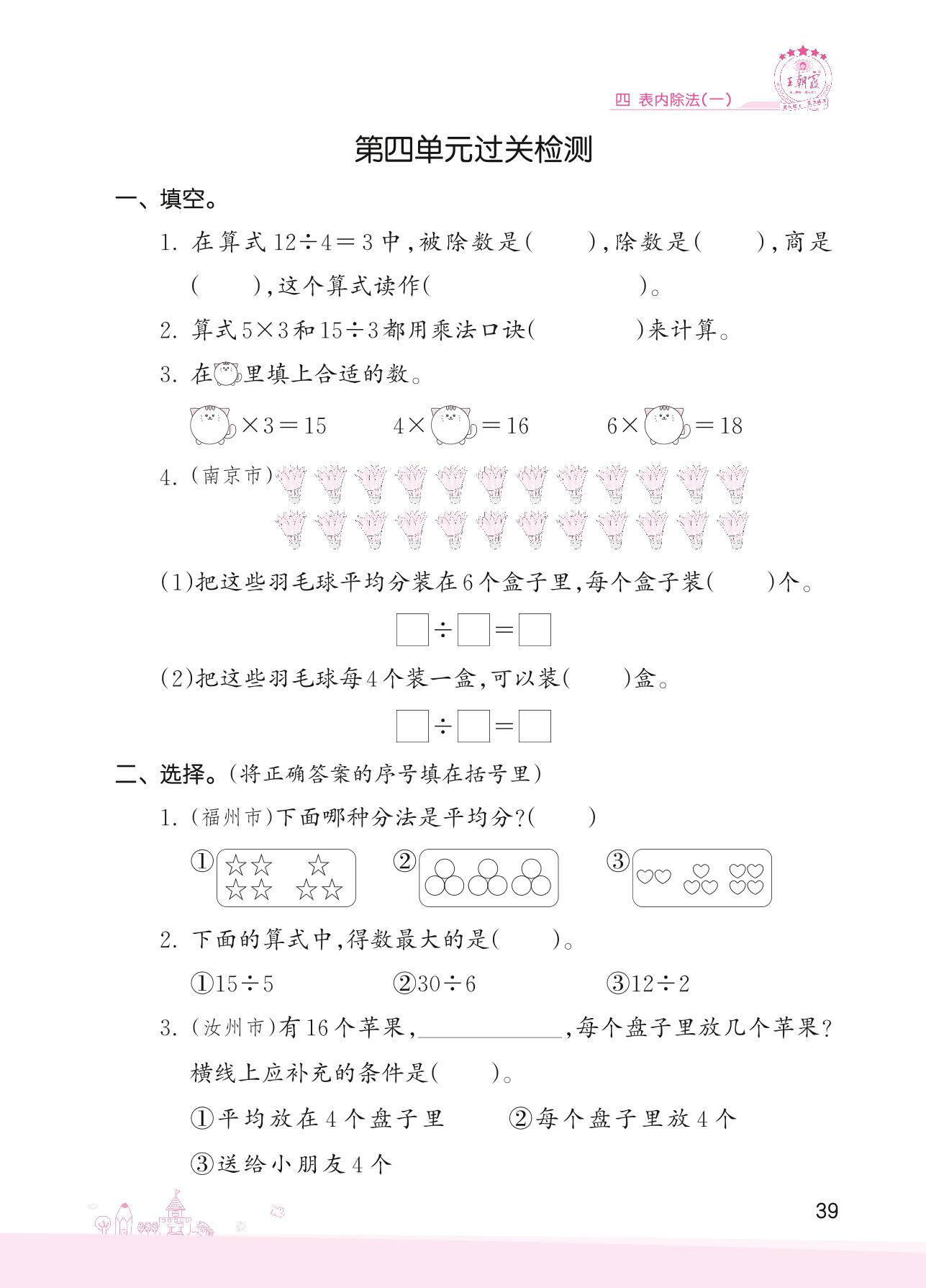 2022上册二年级数学苏教版 四 表内除法(一)——第四单元过关检测