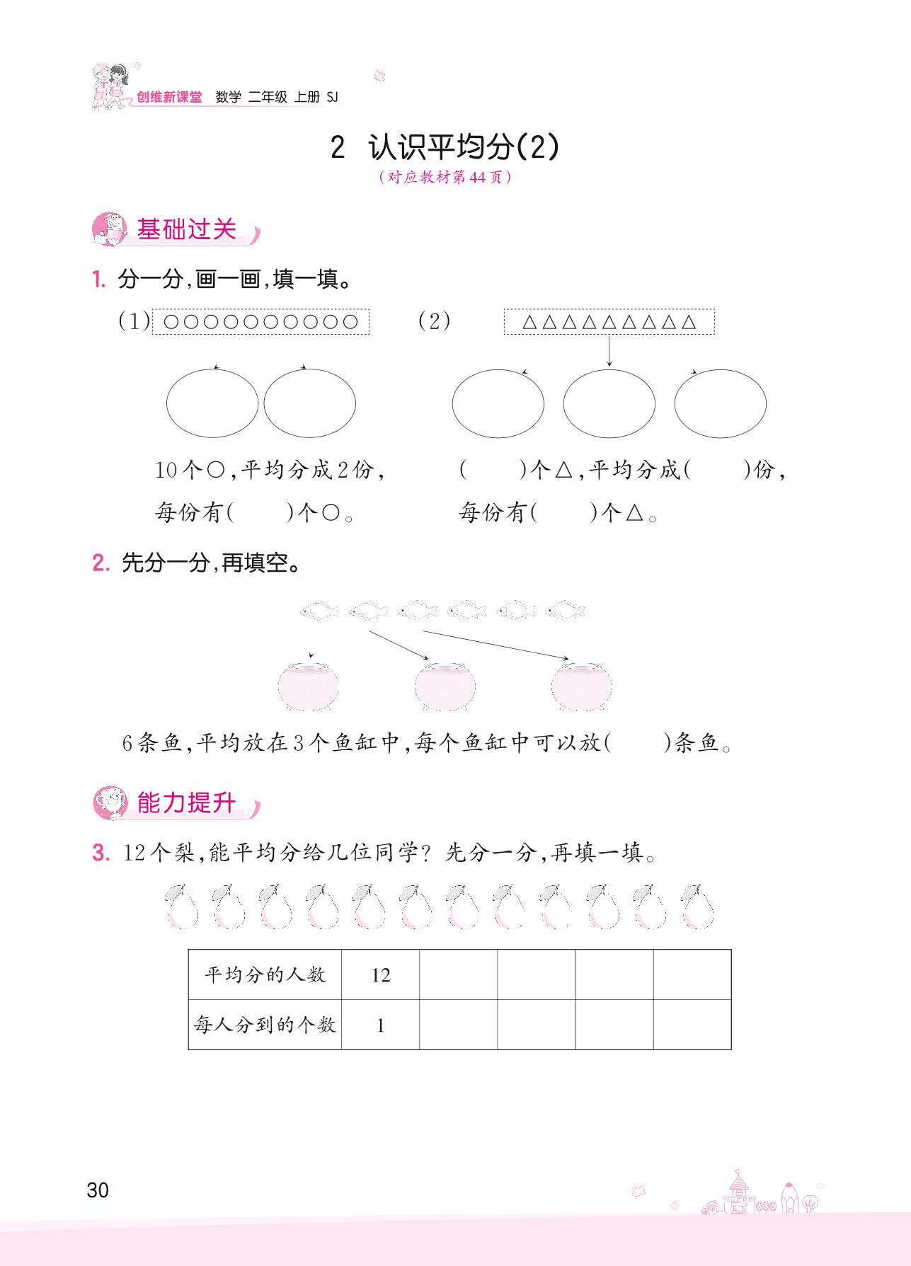 2022上册二年级数学苏教版 四 表内除法(一)——2 认识平均分(2)