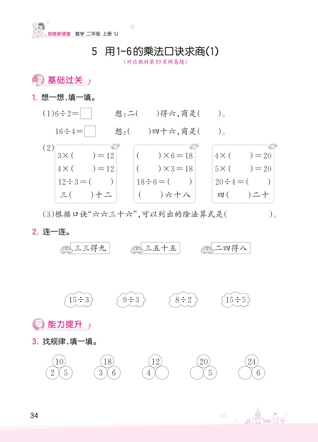 2022上册二年级数学苏教版 四 表内除法(一)——5 用1~6的乘法口诀求商(1)